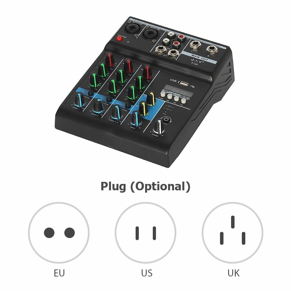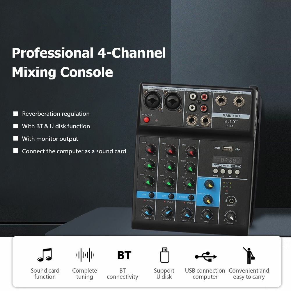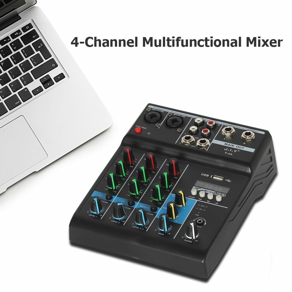 JIY Professional 4-канальный микшерный пульт Мини-USB-микшер со звуковой картой интересное: