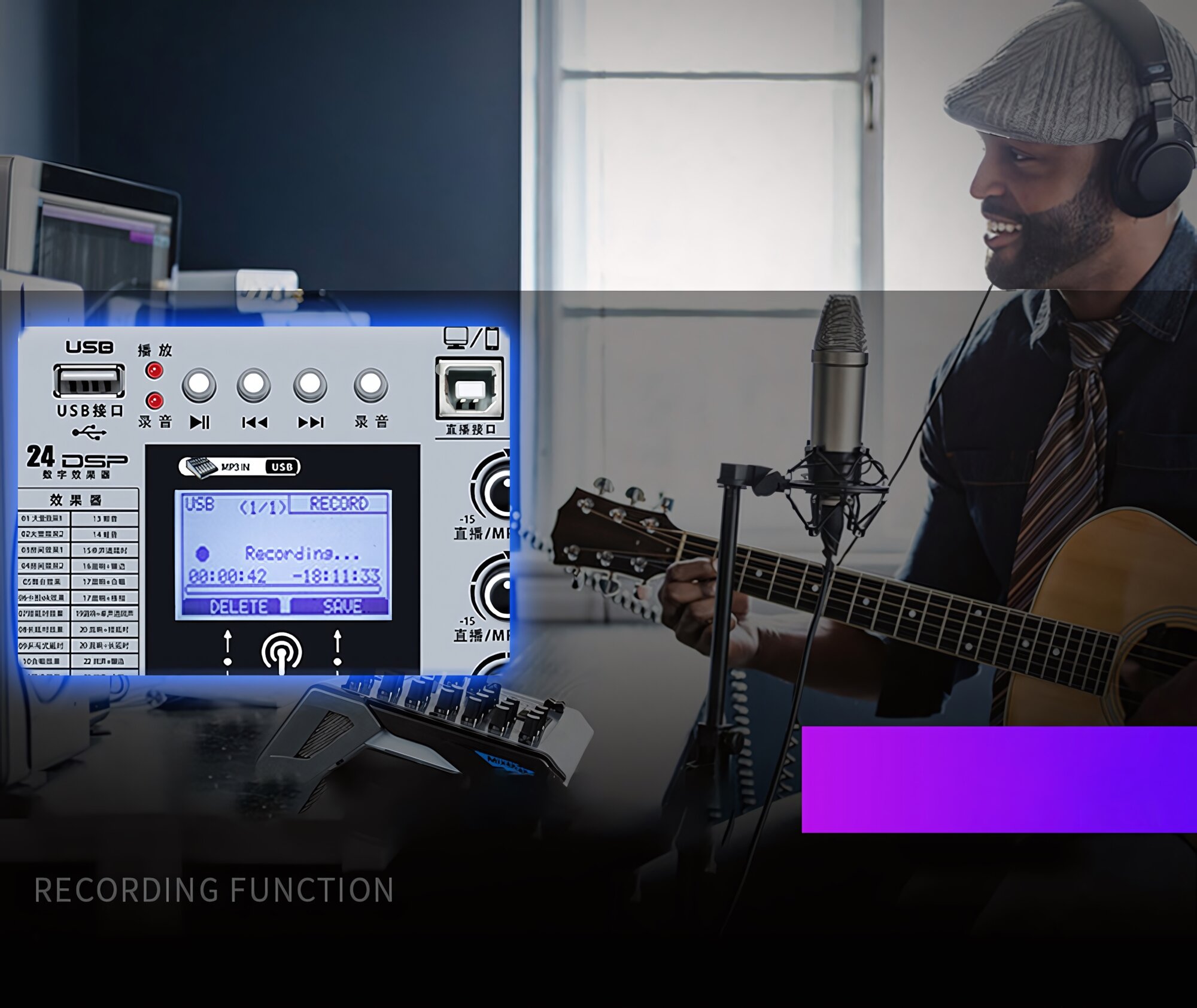 JIY Professional 4-канальный микшерный пульт Мини-USB-микшер со звуковой картой