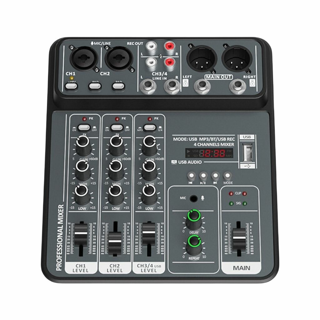 JIY Professional 4-канальный микшерный пульт Мини-USB-микшер со звуковой картой