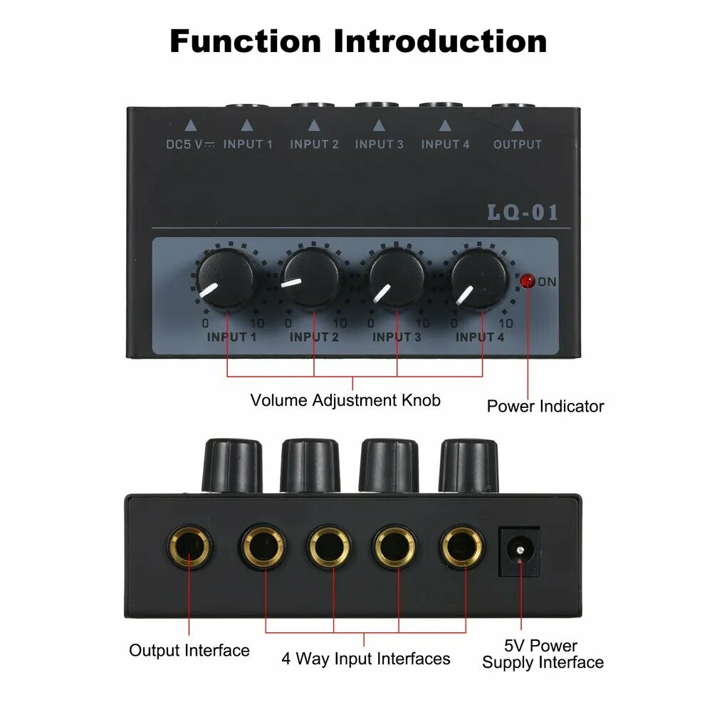 JIY Professional 4-канальный микшерный пульт Мини-USB-микшер со звуковой картой