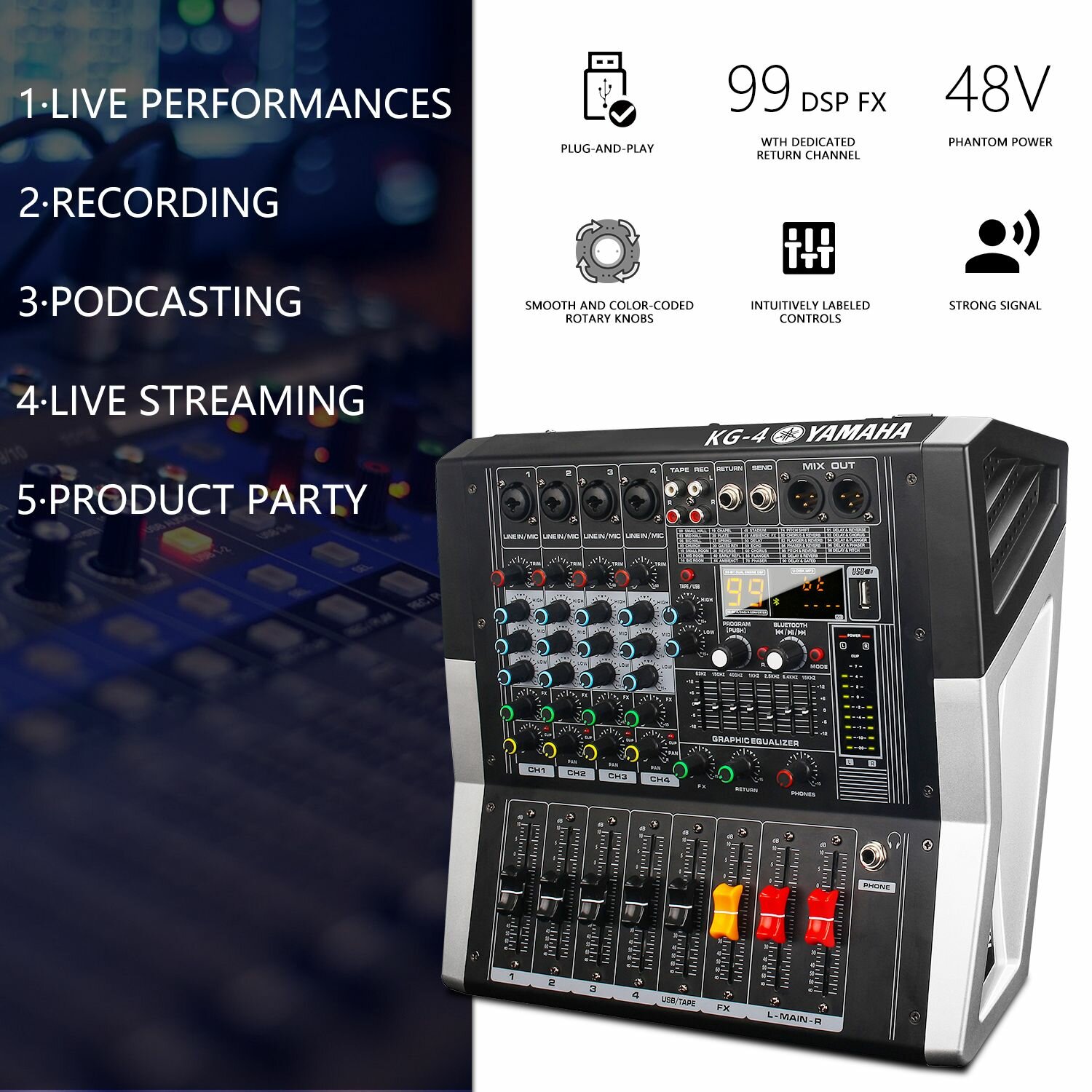 JIY Professional 4-канальный микшерный пульт Мини-USB-микшер со звуковой картой
