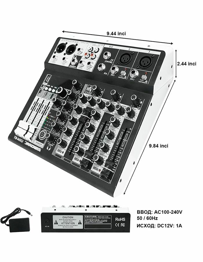 JIY Professional 4-канальный микшерный пульт Мини-USB-микшер со звуковой картой
