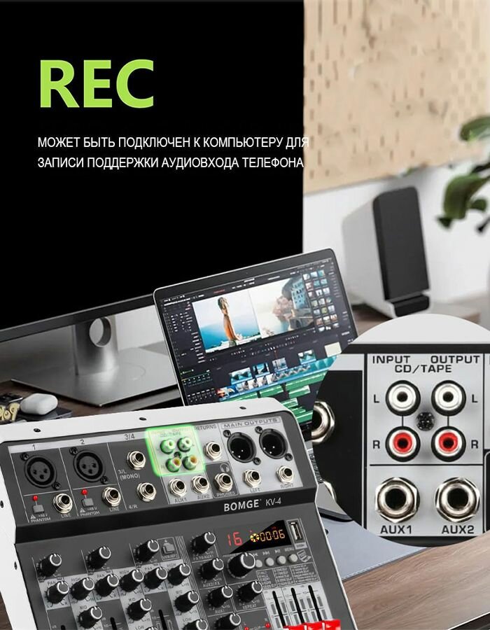 КV4 4-канальная профессиональная микшерная консоль интересное: