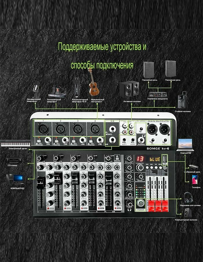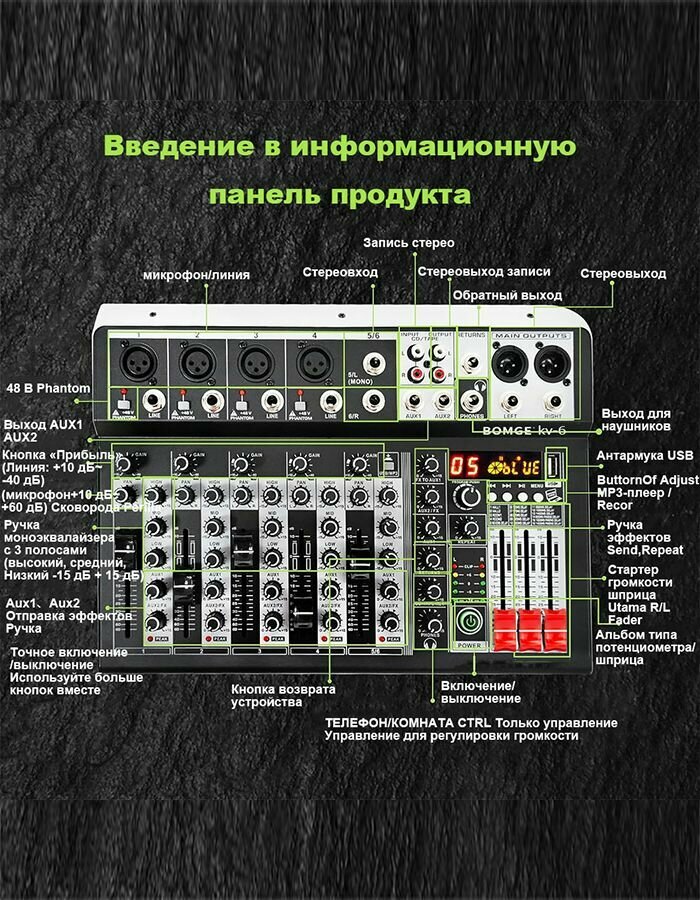 КV6 6-канальная профессиональная микшерная консоль интересное: