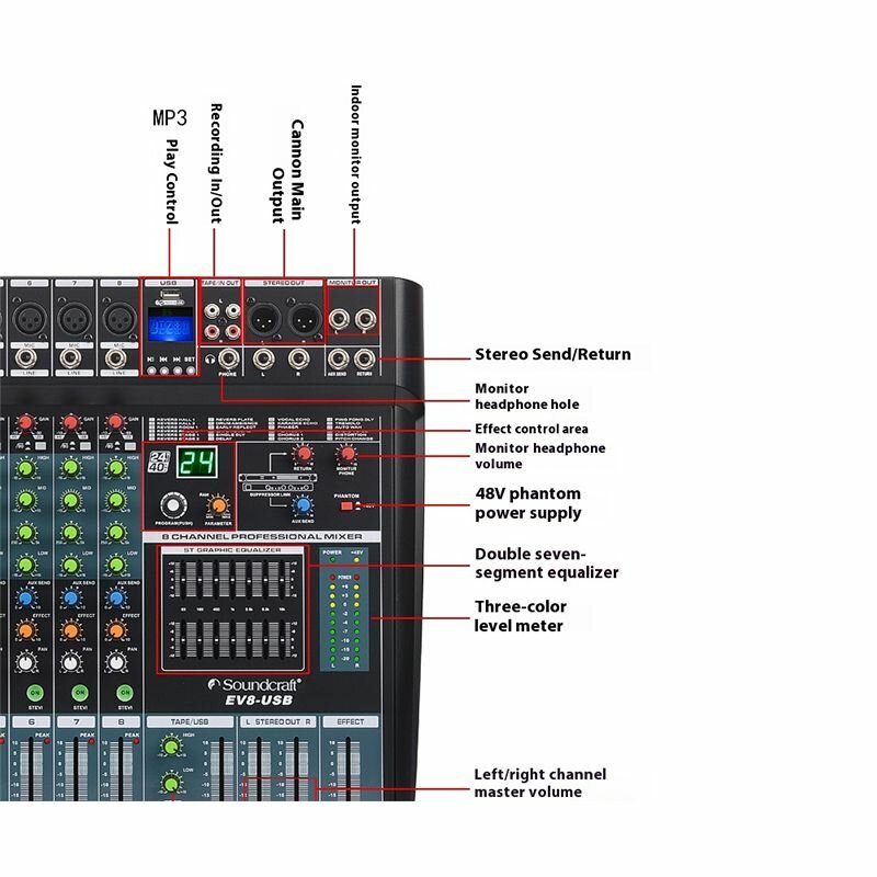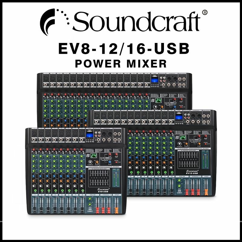 Soundcraft EV8-USB 8-канальный миксер с 24 цифровыми эффектами, поддержка USB, Bluetooth