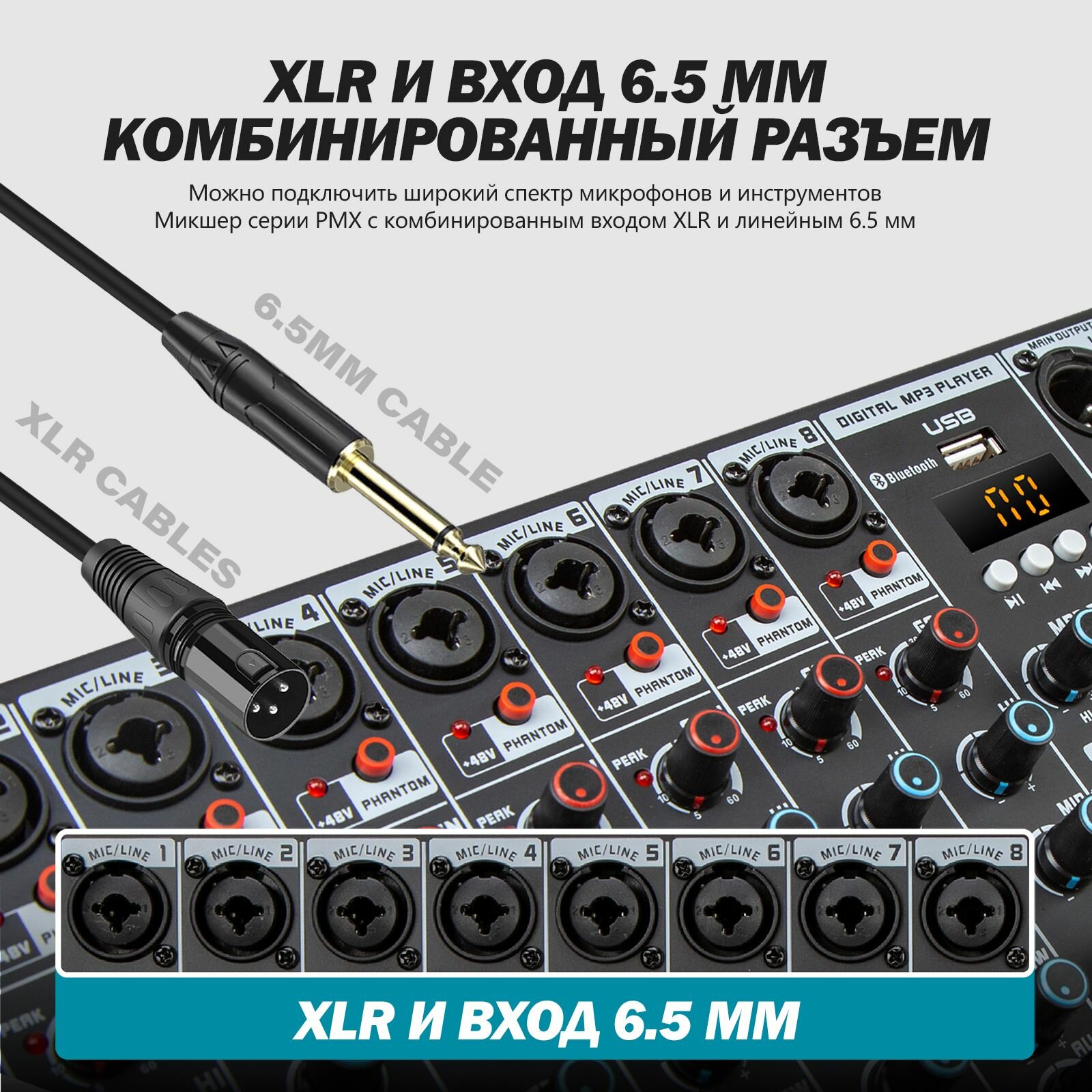 Микшерный пульт DJNOG PA-6, аналоговый, 6 каналов, фантомное питание