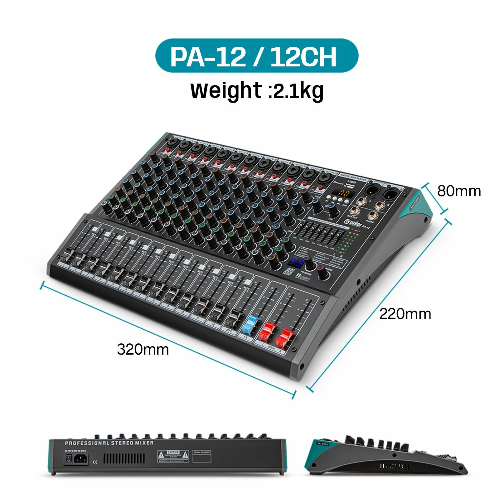 Купить Микшер DGNOG Mixer PA-12, 12 каналов, фантомное питание, Bluetooth, USB