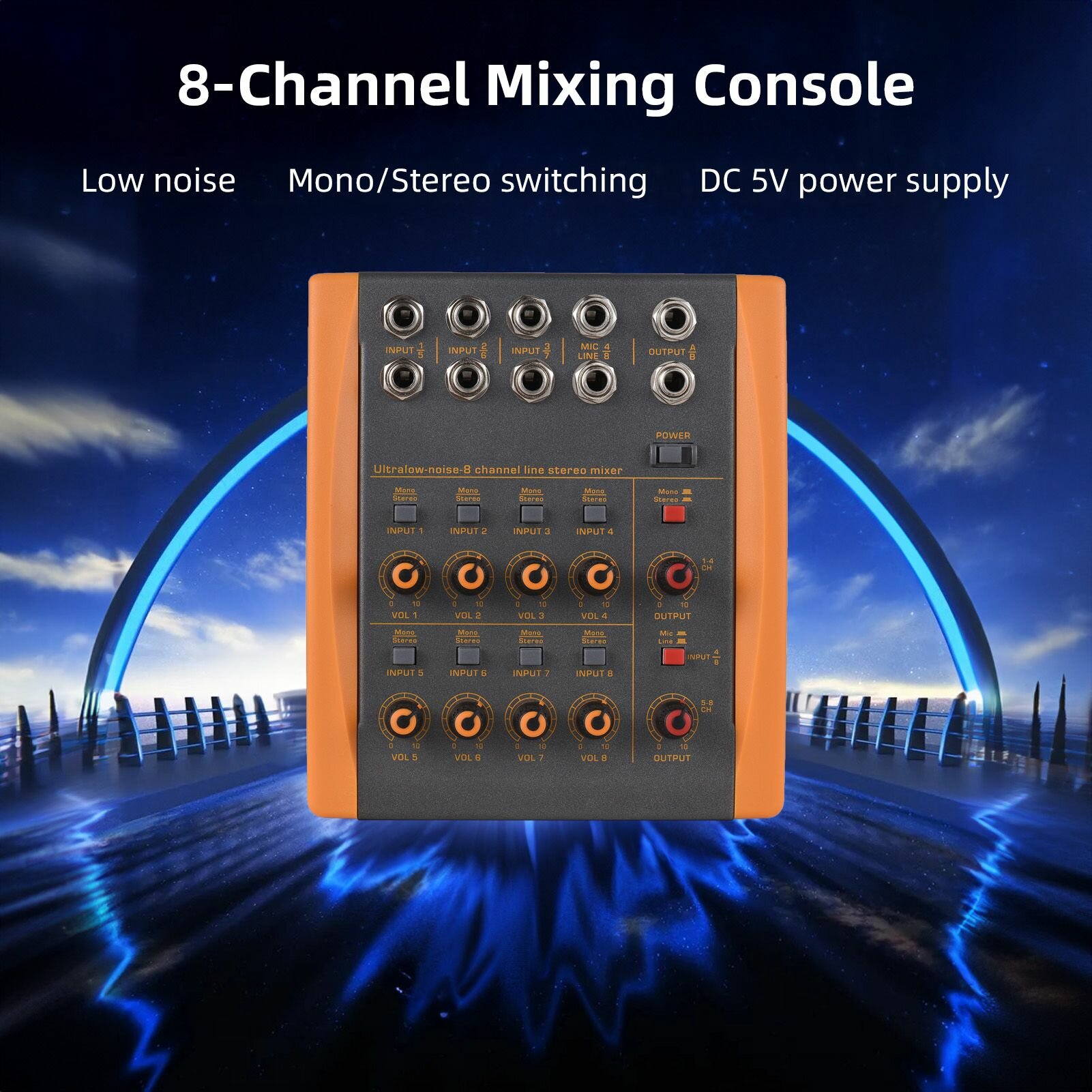 Купить Микшерный пульт ,8-канальный аудиомикшер, микшер для гитары/баса/ клавиатуры