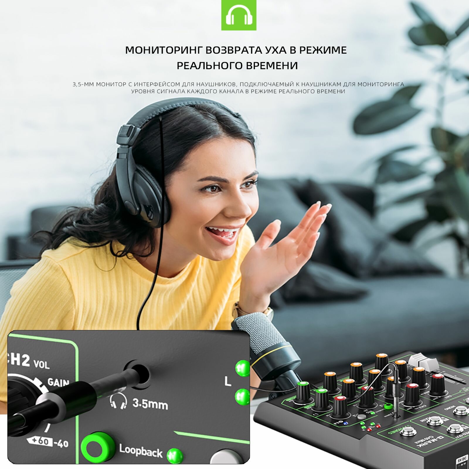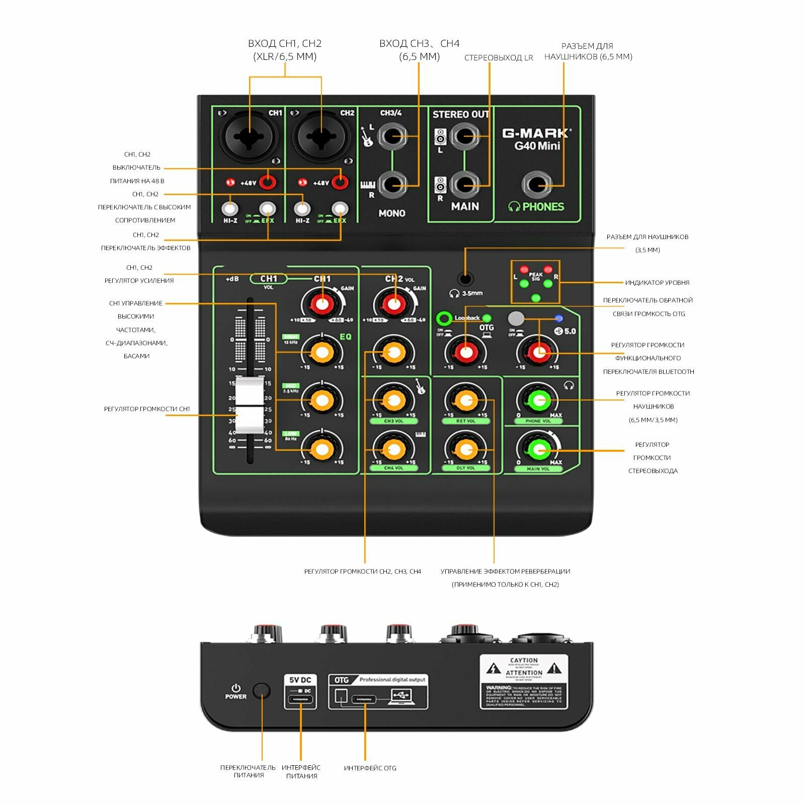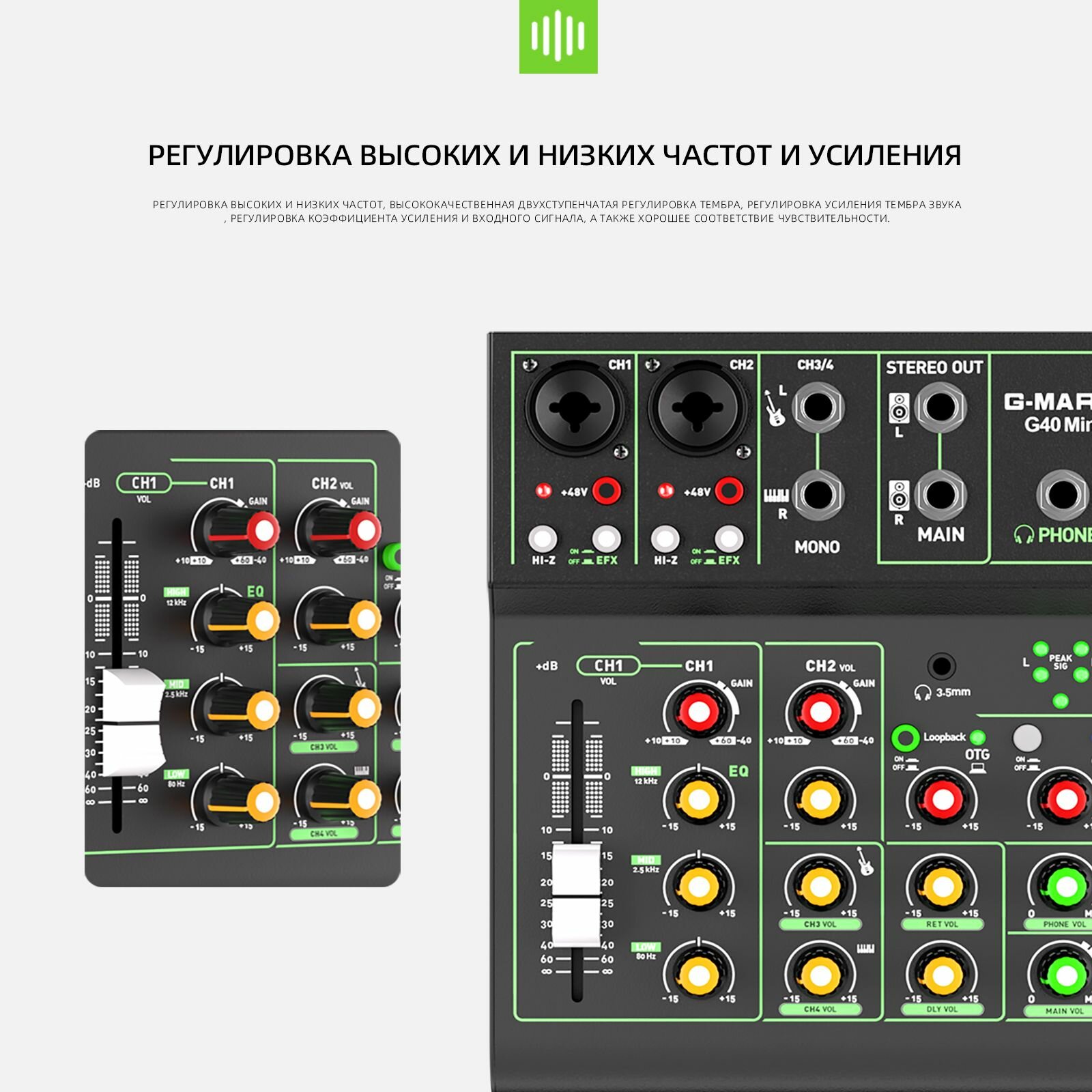 Аудиомикшер G-MARK OTG G40 Mini Metal с функцией повтора задержки включения Bluetooth 48 В интересное: