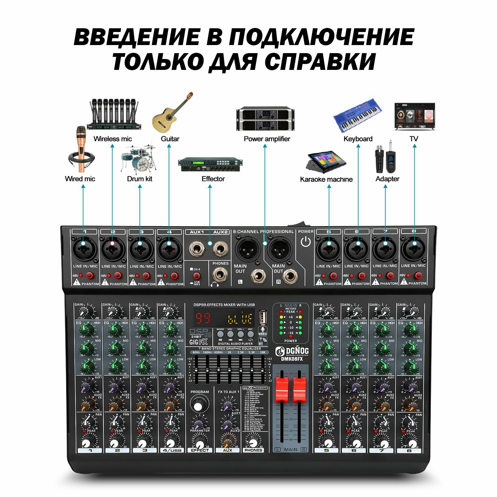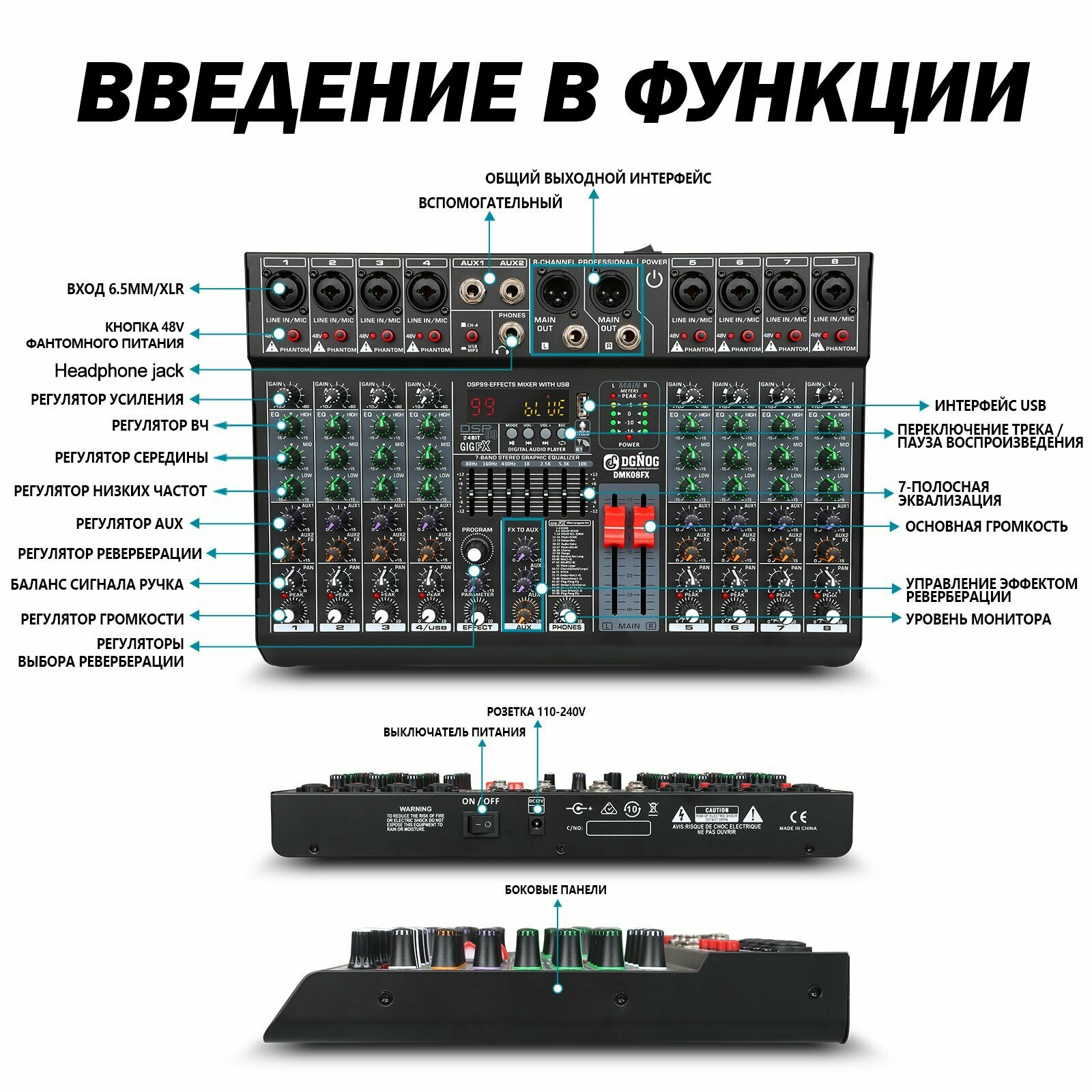 DJ-микшер DGNOG DMK08FX, аналоговый, 8-канальный, черный матовый интересное: