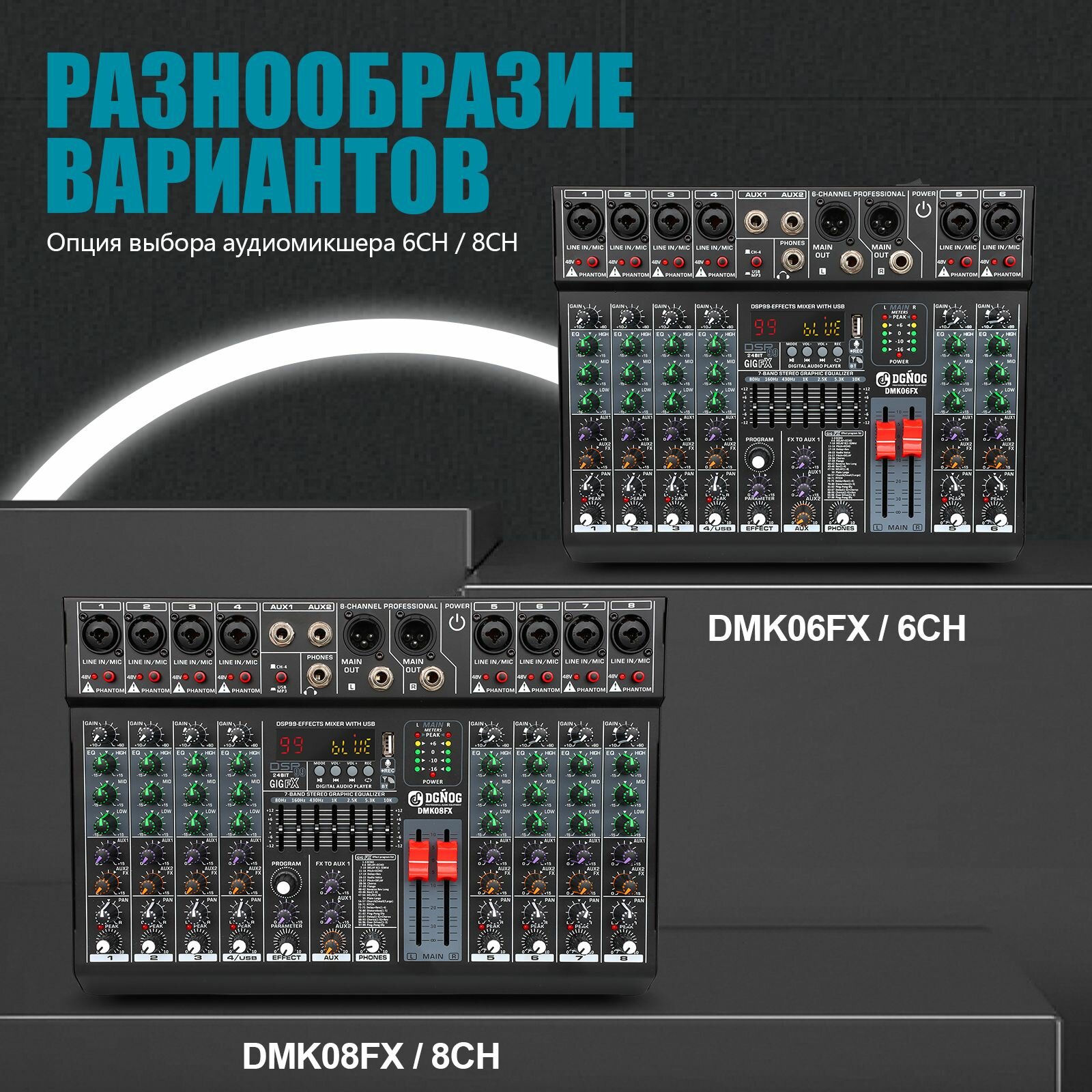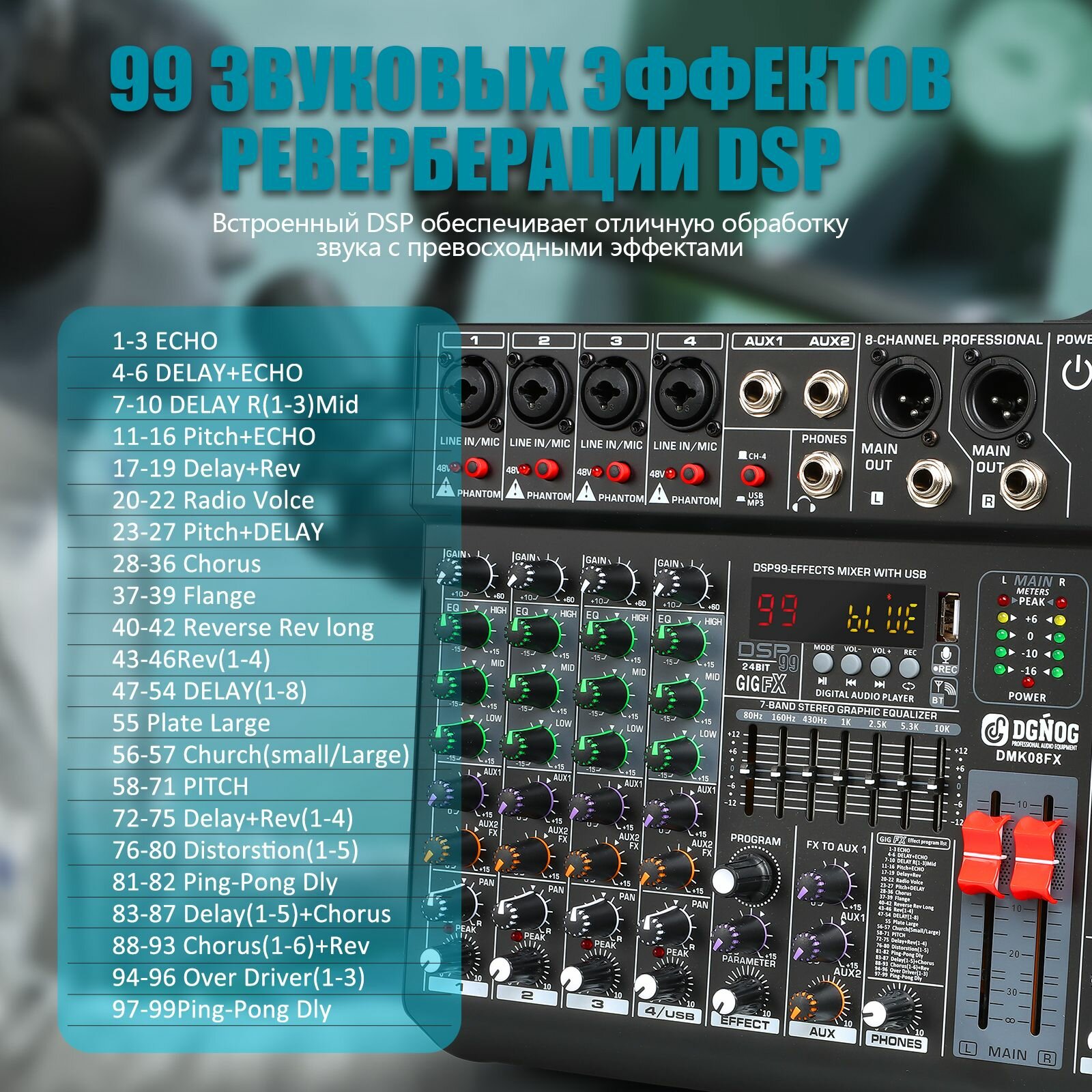 Купить DJ-микшер DGNOG DMK08FX, аналоговый, 8-канальный, черный матовый