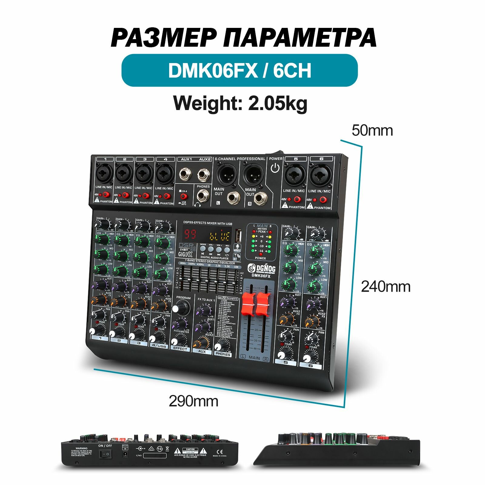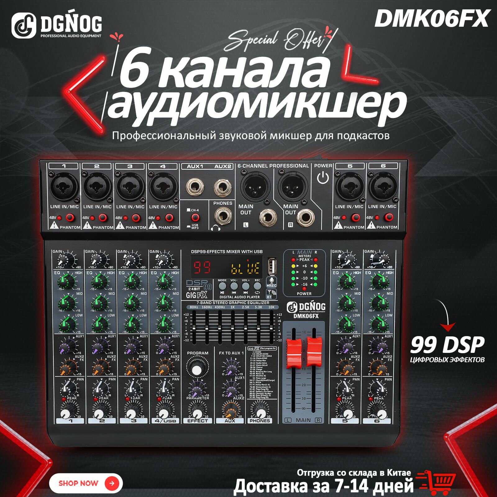 Купить 6-канальный Микшерный пульт DGNOG DMK06FX DJ аудиомикшер, фантомное питание 48 В, с эффектом 99 DSP,7-полосный эквалайзер