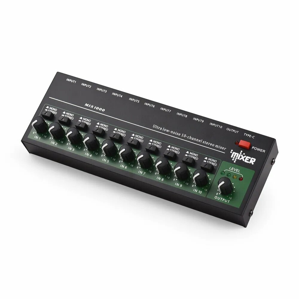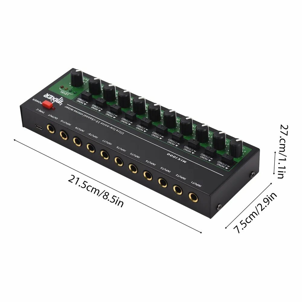 10-канальный аудиомикшер Стерео моно линейный микшер 6,35 мм TRS/TS вход Металлический интересное: