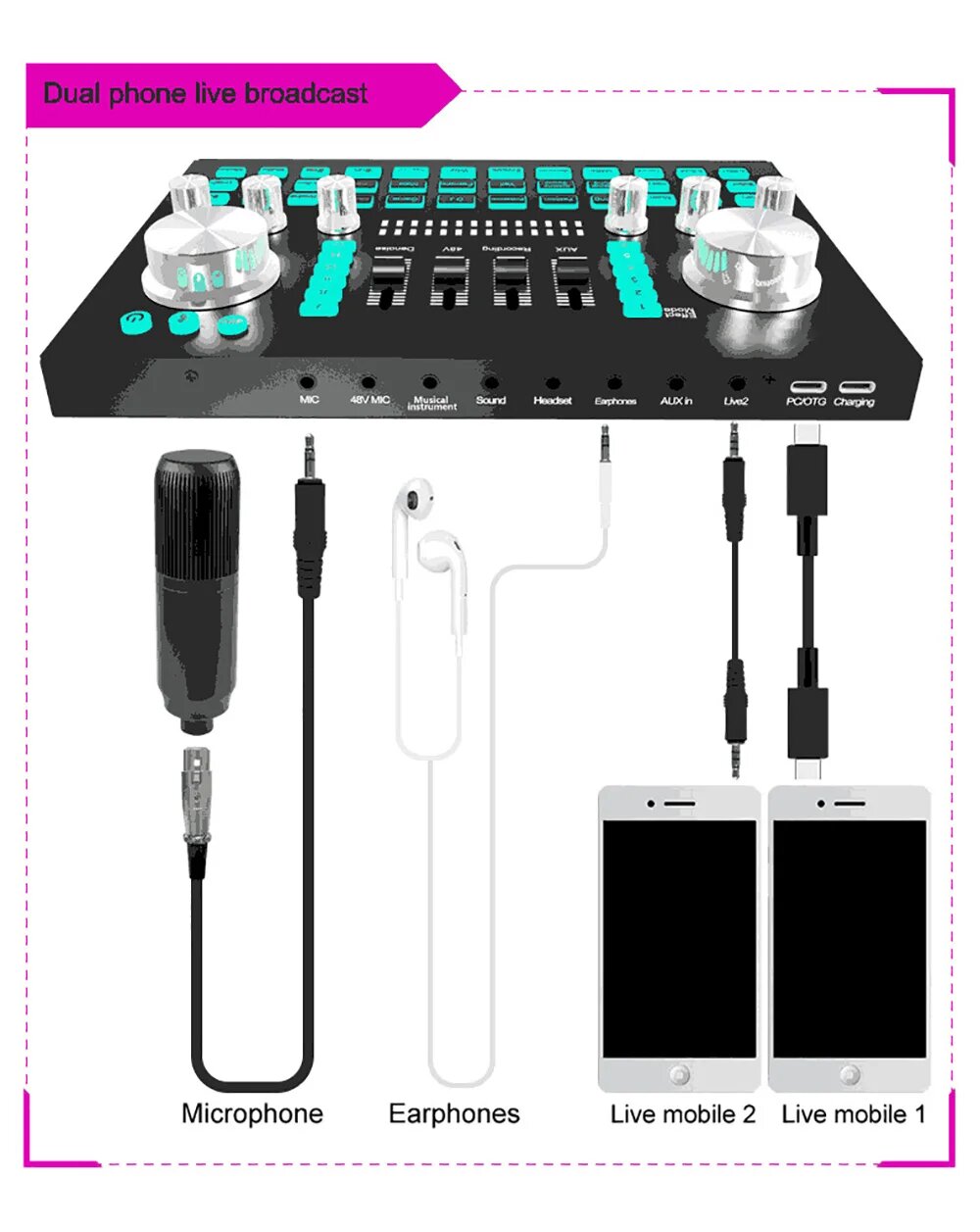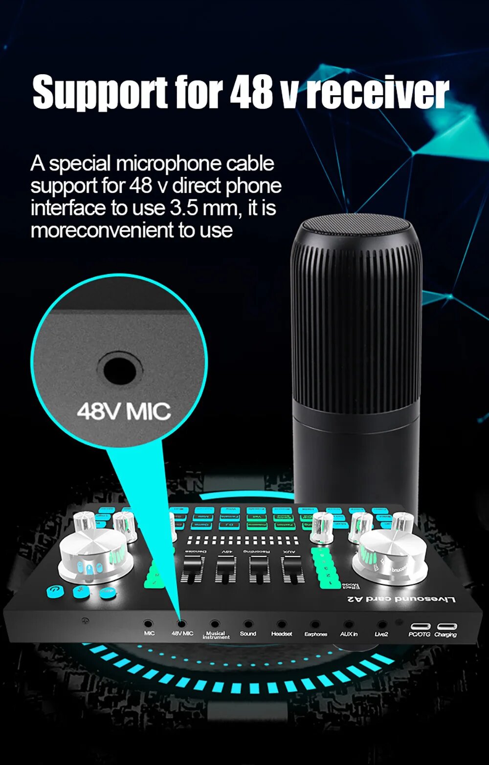 JIY Professional 4-канальный микшерный пульт Мини-USB-микшер со звуковой картой