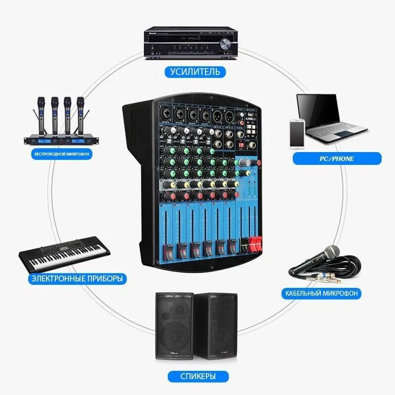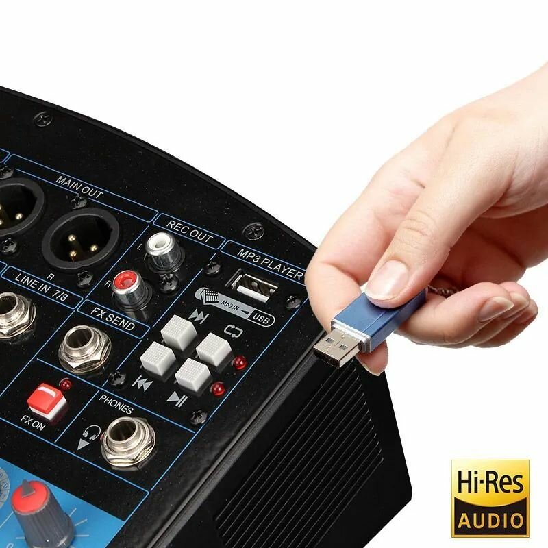 JIY Professional 4-канальный микшерный пульт Мини-USB-микшер со звуковой картой