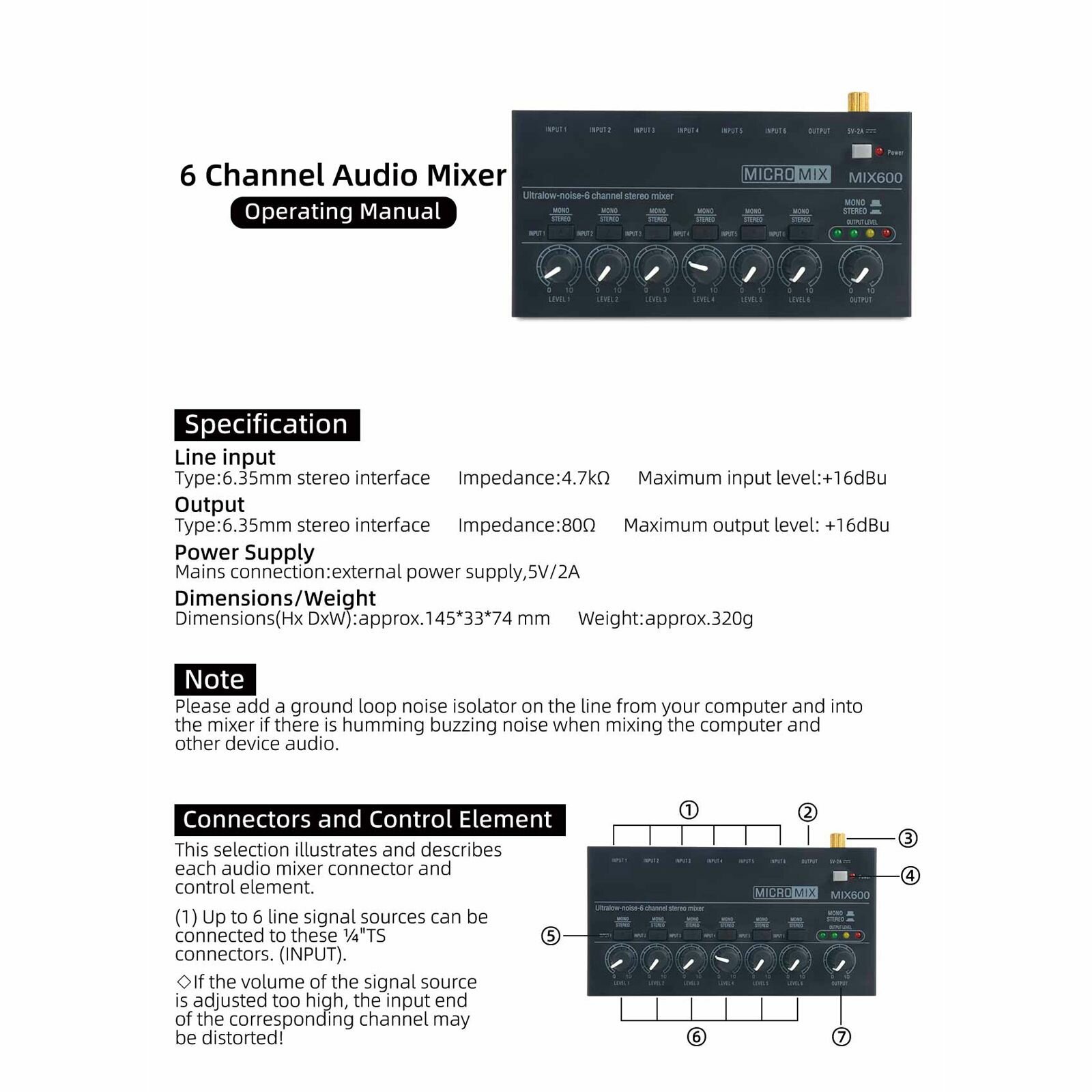 Аналоговый микшер Invotone MX6