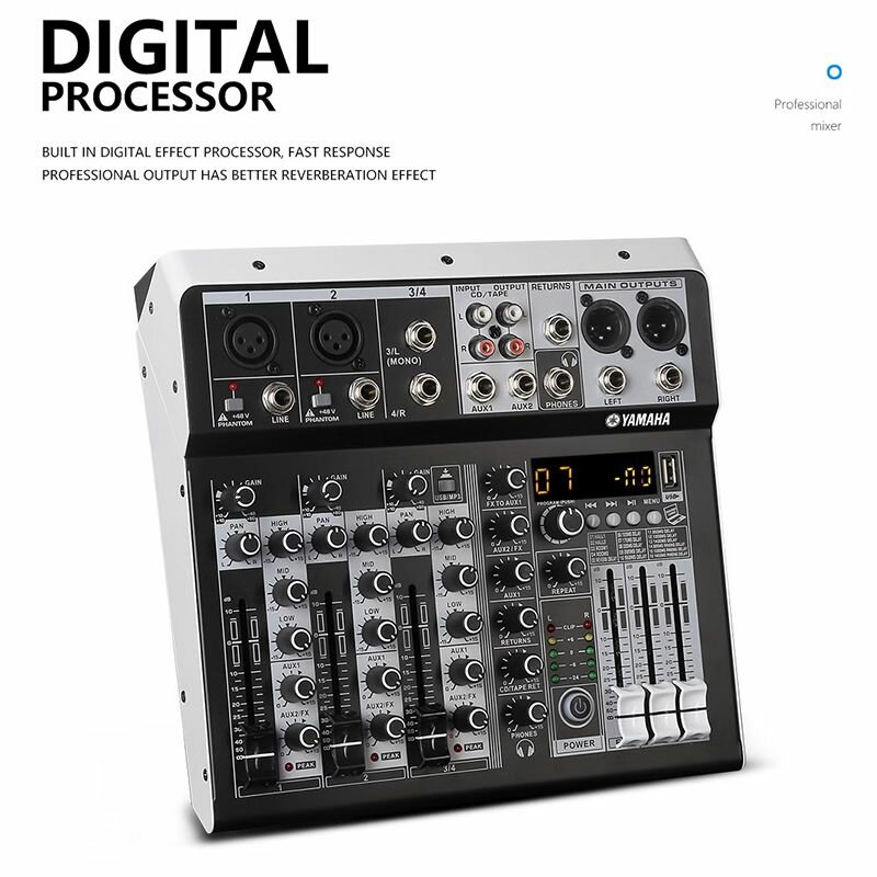 JIY Professional 4-канальный микшерный пульт Мини-USB-микшер со звуковой картой