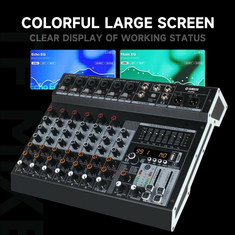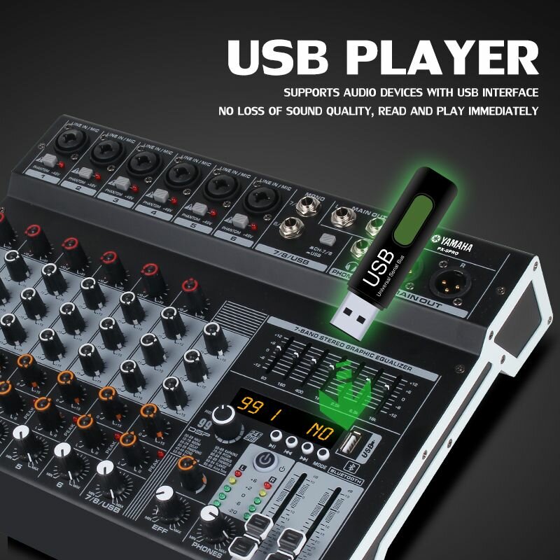 YAMAHA Mixer PX-6PRO 6-канальный аудиомиксер с 7-диапазонным эквалайзером, 99 DSP эффектов, + 48V фантомное питание, поддержка Bluetooth/USB/MP3 воспроизведения