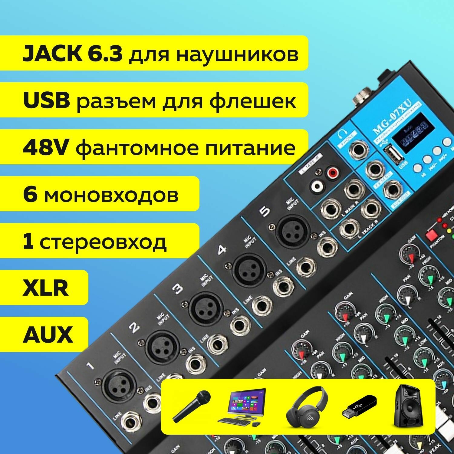 Микшерный пульт 7-ми канальный J.I.Y MG-07XU-Праздничные подарки интересное: