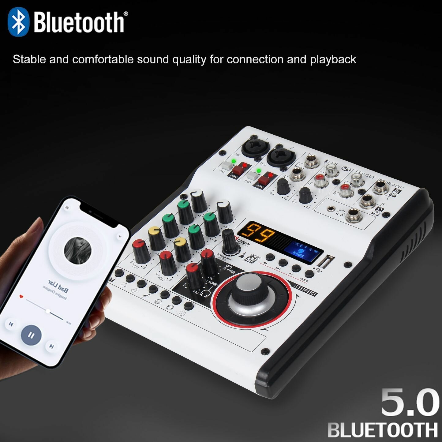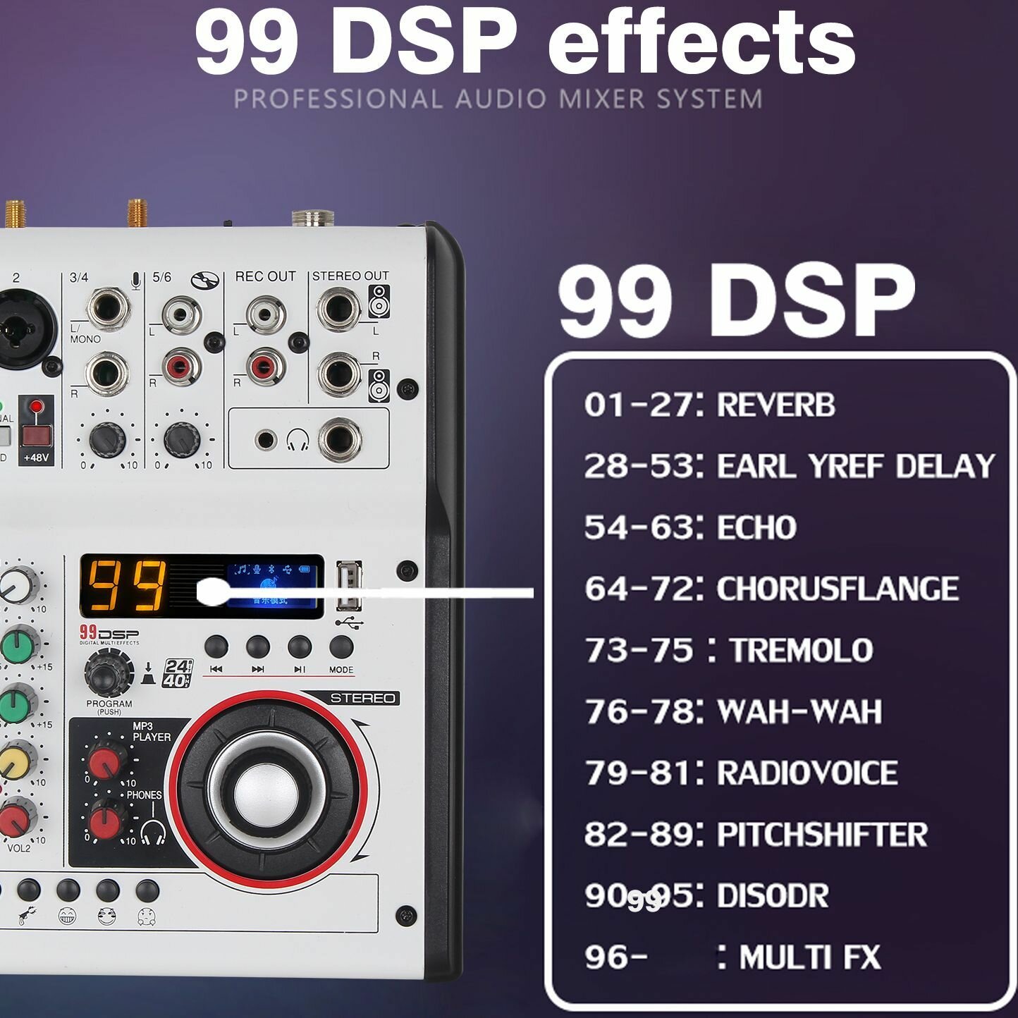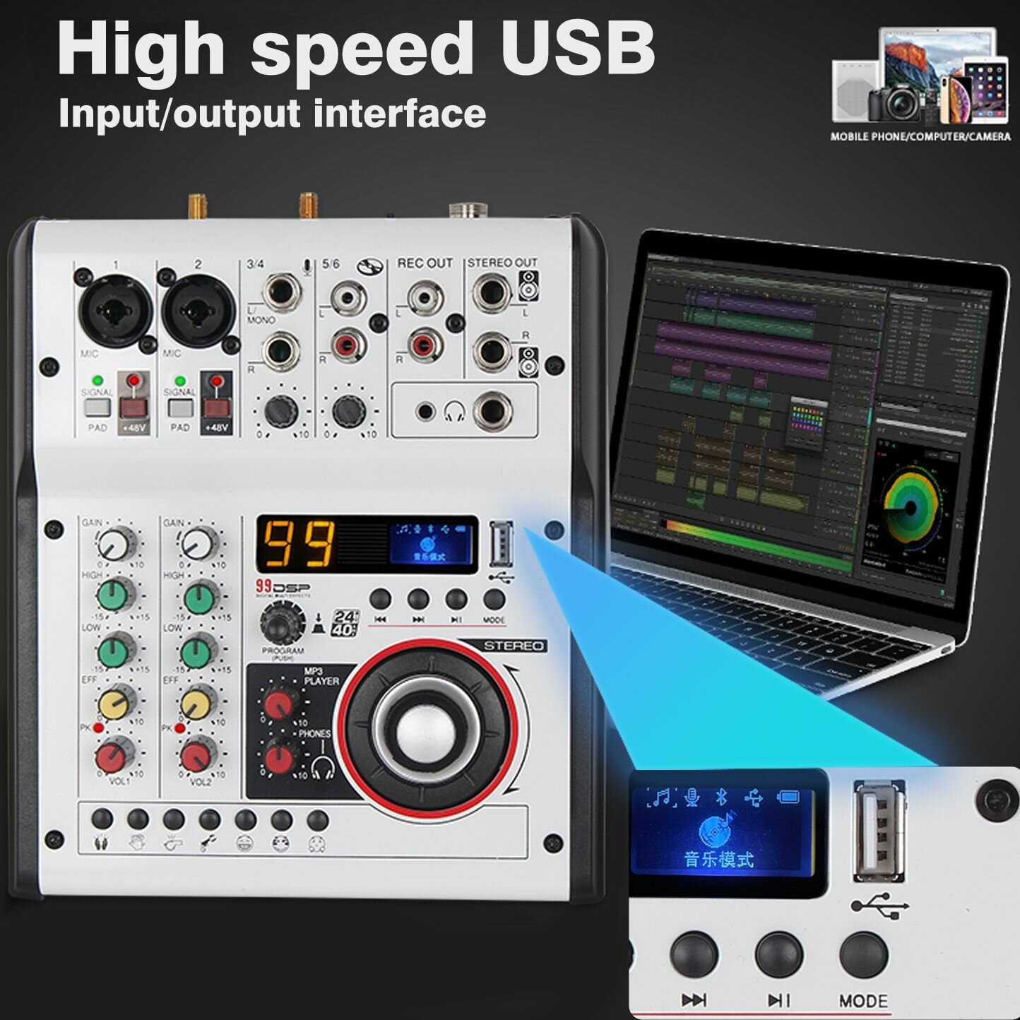 JIY Professional 4-канальный микшерный пульт Мини-USB-микшер со звуковой картой