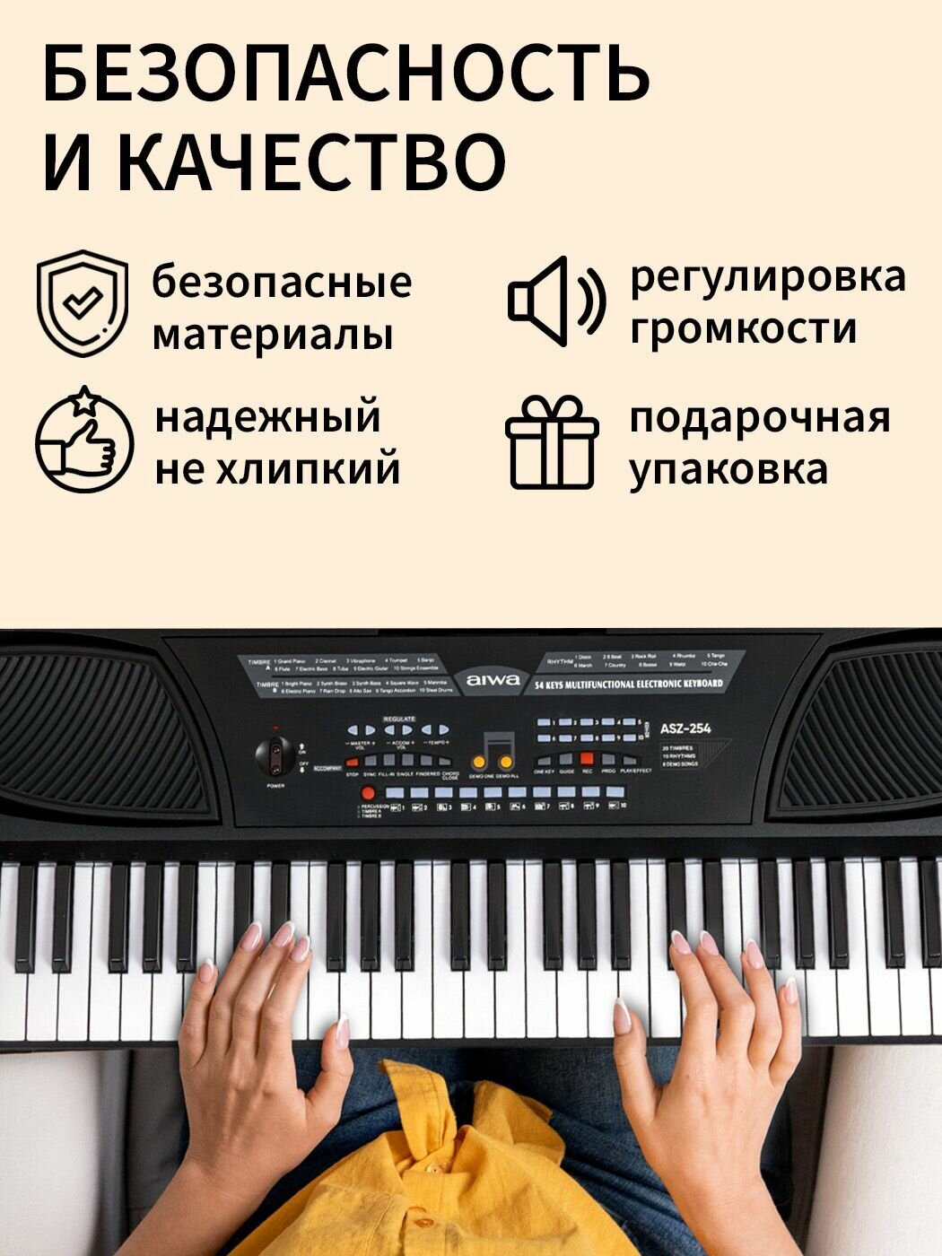 Купить Синтезатор AIWA ASZ-254, 54 клавиши, вход для микрофона, запись и воспроизведение, 20 тембров, 10 ритмов