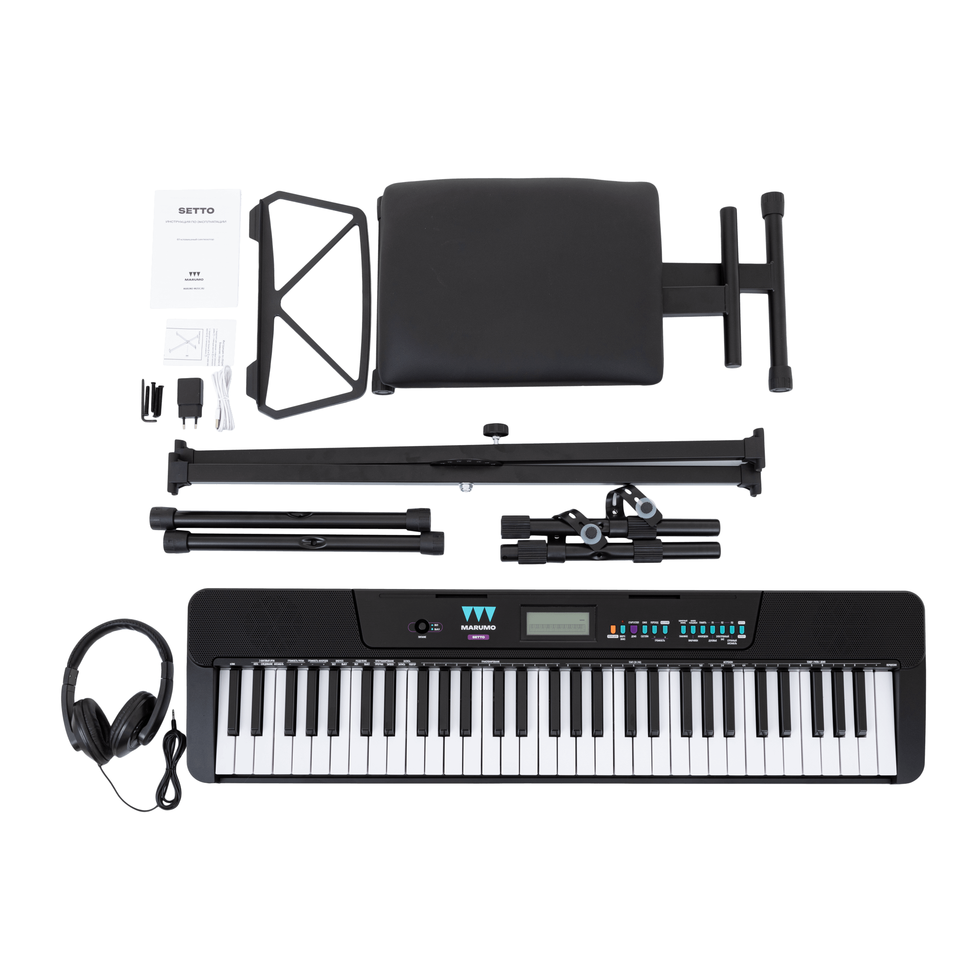 Купить Синтезатор MARUMO Setto, с аксессуарами, черный, 61 клавиша, полноразмерная клавиатура, с банкеткой