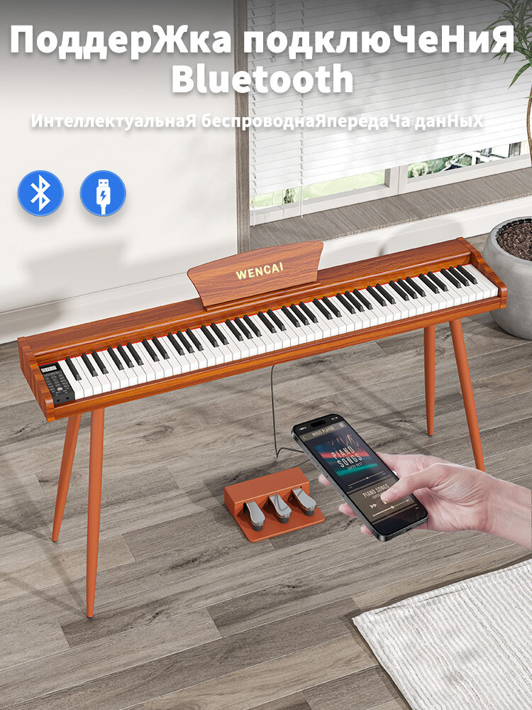 Цифровое пианино Bluetooth на четырех ножках, с 88 клавишами, оранжевый интересное: