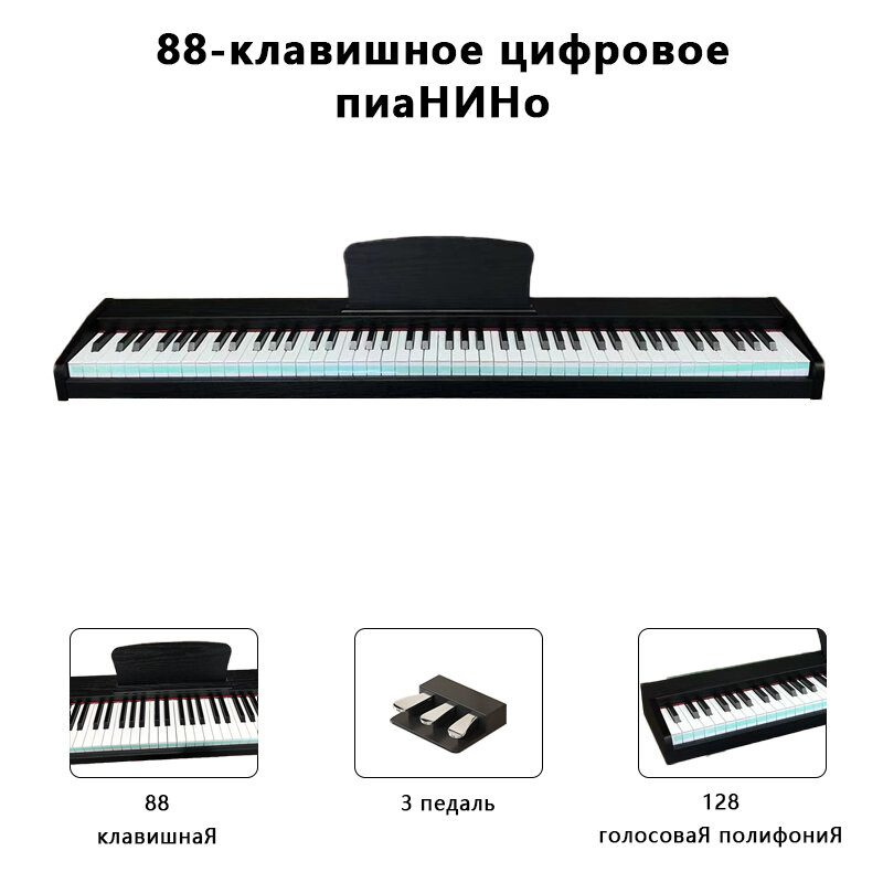 Цифровое пианино, 88 клавиш, портативное, Bluetooth, без педали, черная интересное: