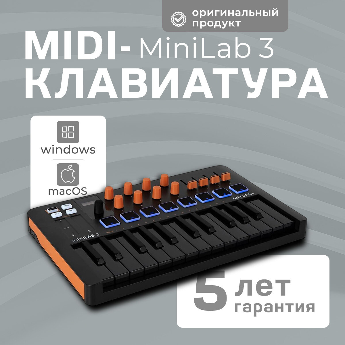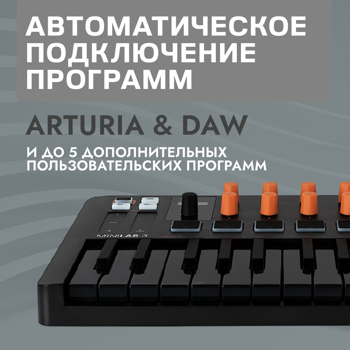 Клавиатура MIDI Arturia "MiniLAB 3", 25 клавиш, малоразмерная, RGB-подсветка интересное: