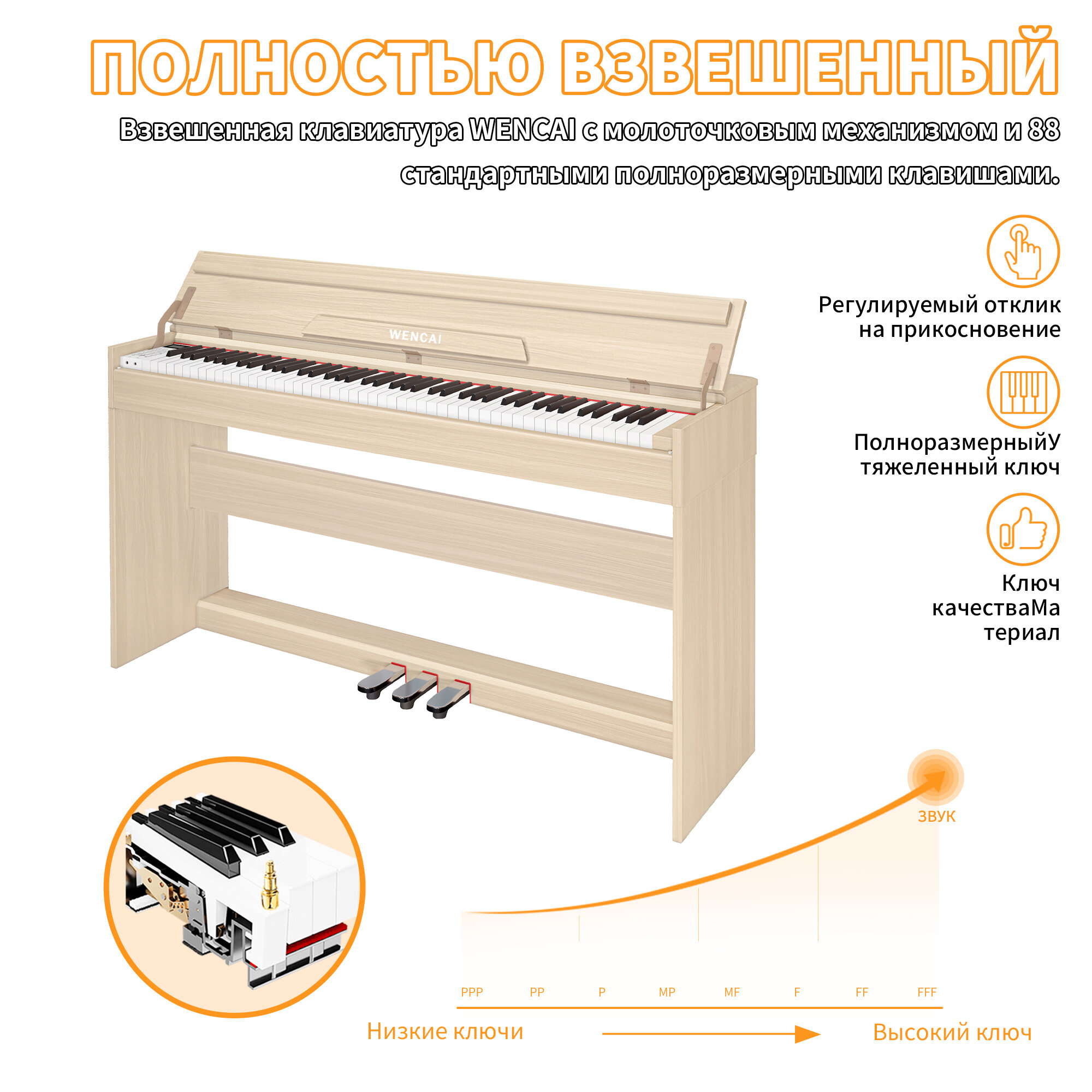 Цифровое пианино Wencai BL-8818-бежевое, 88 клавиш, с крышкой клавиатуры интересное: