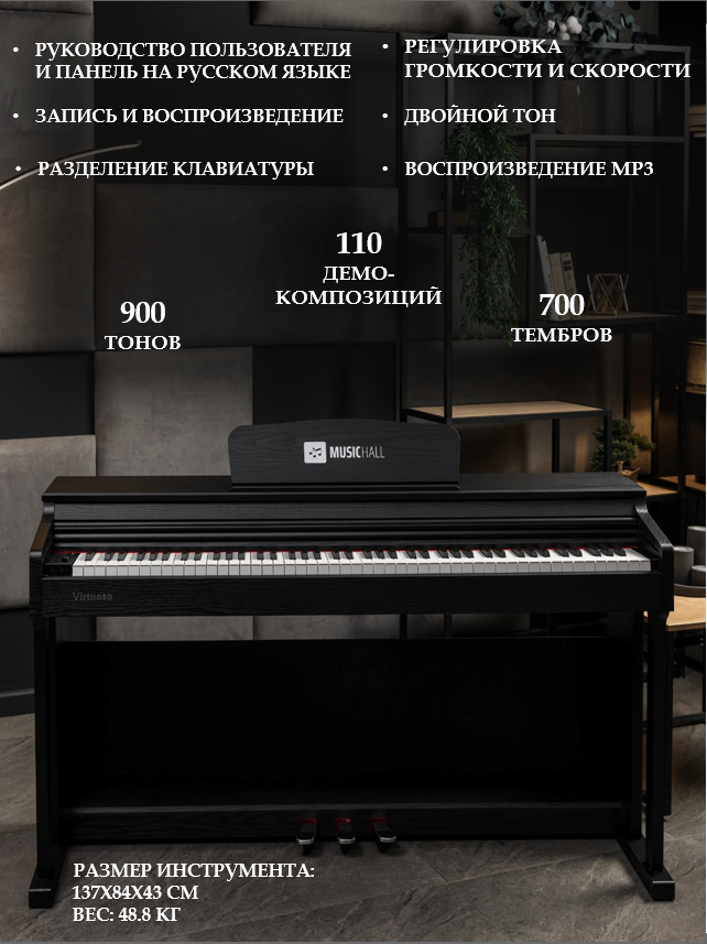 Цифровое пианино в корпусе MusicHall Virtuoso, MIDI, с молоточковой взвешенной клавиатурой, черный интересное: