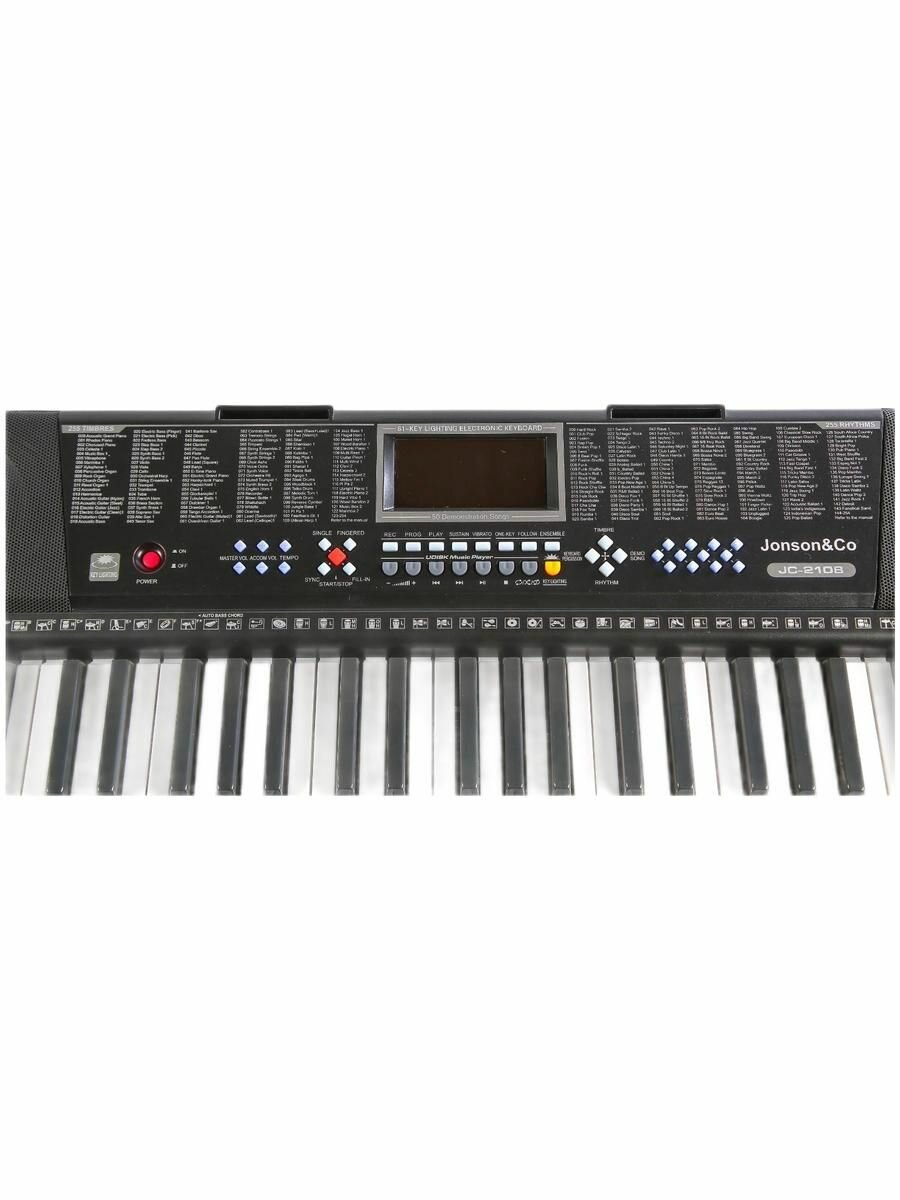 Купить Синтезатор цифровой 61 клавиш Jonson&Co JC-2108 (полноразмерные), чёрное