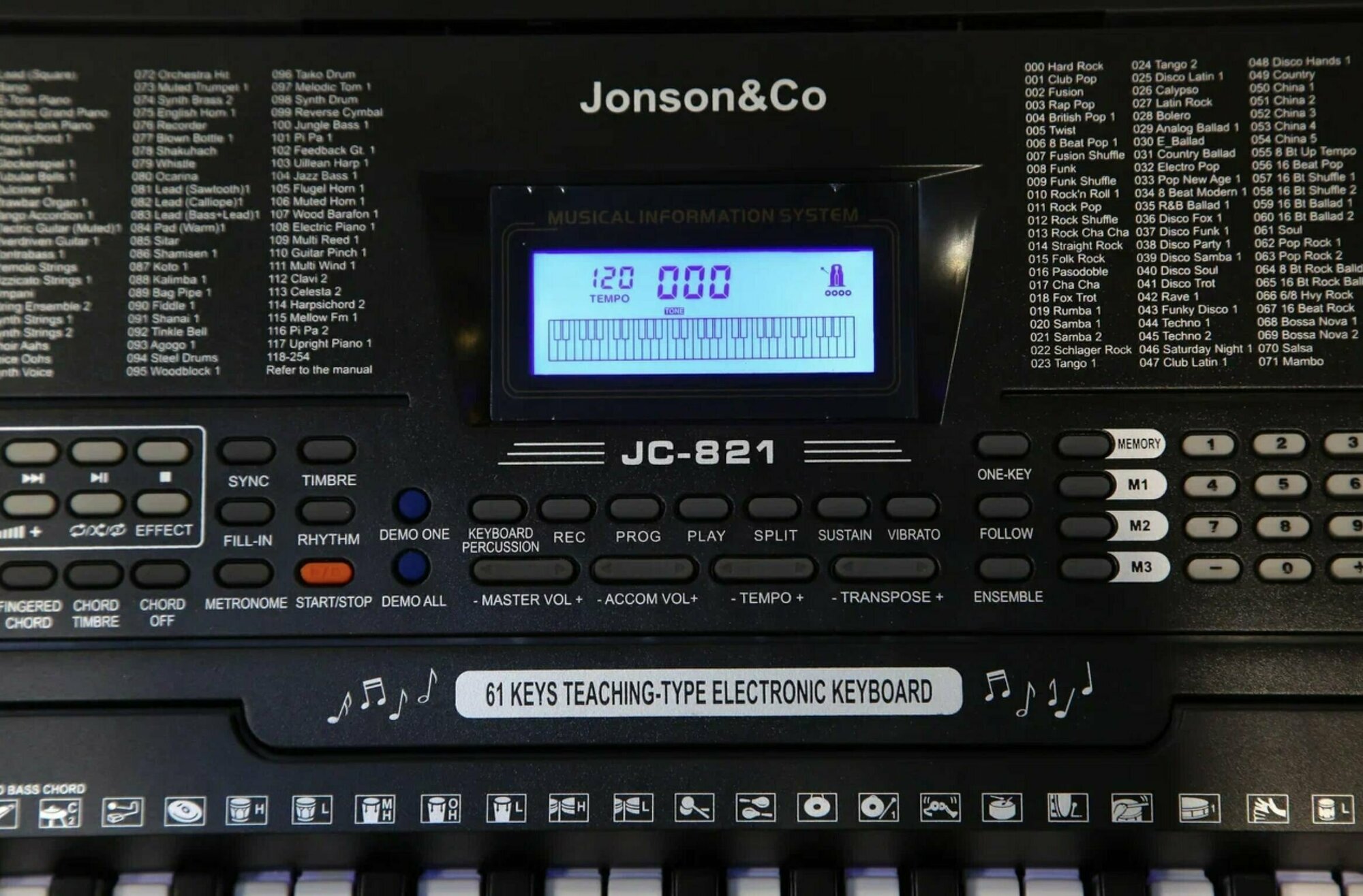 Купить Синтезатор цифровой 61 клавиш Jonson&Co JC-821, (полноразмерные), чёрное