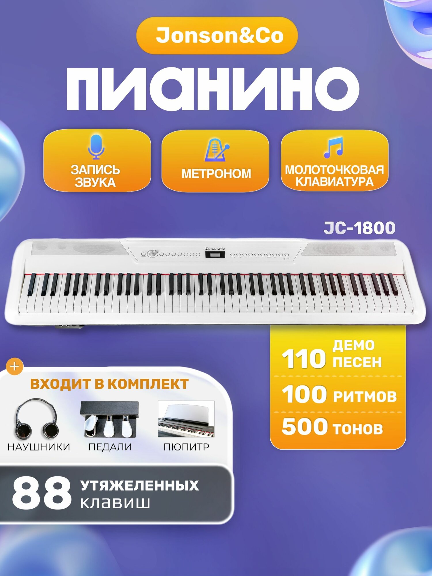 СохранитьСинтезатор цифровой 88 клавиш Jordani JC-1800 WH (полноразмерные), Белое интересное: