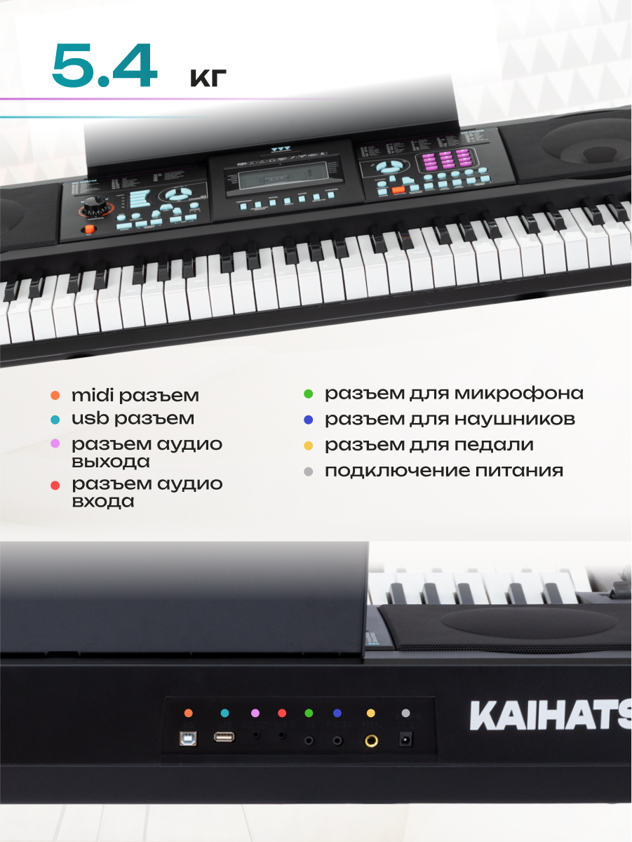 Синтезатор MARUMO KAIHATSU, ЖК-экран, 61 клавиша, полувзвешенный, черный интересное: