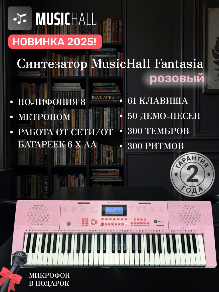 Синтезатор MusicHall Fantasia, 61 клавиша с активной клавиатурой, розовый интересное: