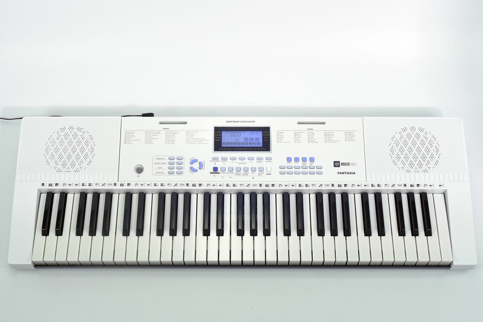 Синтезатор MusicHall Fantasia, 61 клавиша с активной клавиатурой, белый интересное: