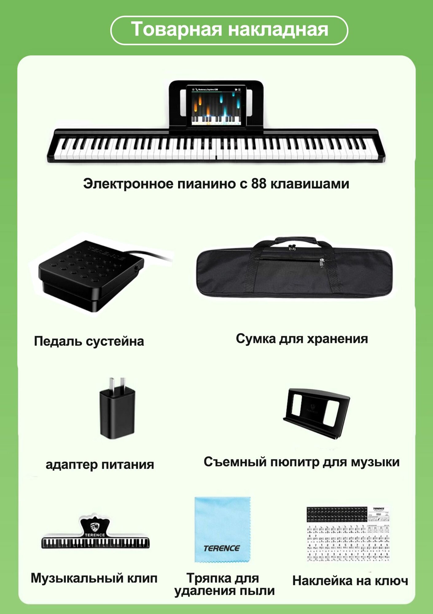 Цифровое пианино TERENCE, 88 клавиш, Bluetooth, складное электронное пианино, с ножной педалью и сумкой для хранения интересное: