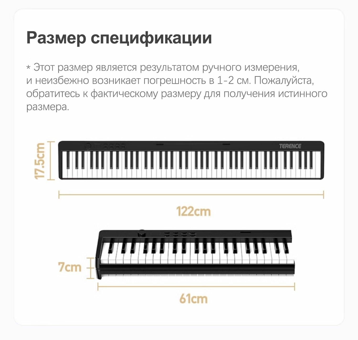 Ниже Вы можете прочитать отзывы на Цифровое пианино TERENCE, 88 клавиш, Bluetooth, складное электронное пианино, с ножной педалью и сумкой для хранения, ознакомится с подробными характеристиками, посмотреть интересные обзоры и фотографии на Цифровое пианино TERENCE, 88 клавиш, Bluetooth, складное электронное пианино, с ножной педалью и сумкой для хранения.