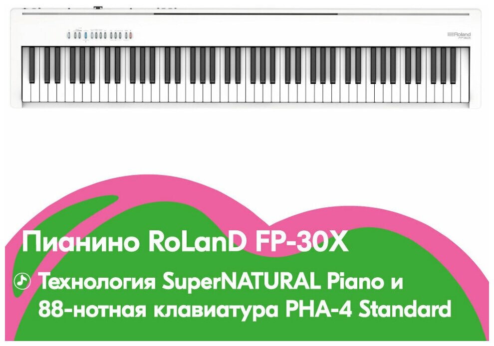 ROLAND FP-30X WH - цифровое фортепиано, 88 кл. PHA-4 Standard, 56 тембров, 256 полиф, (цвет белый) интересное: