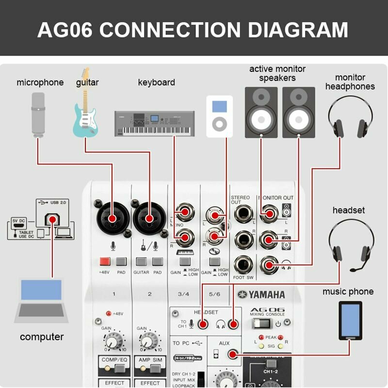Yamaha AG06 Телефонная станция, небольшая звукозаписывающая станция интересное: