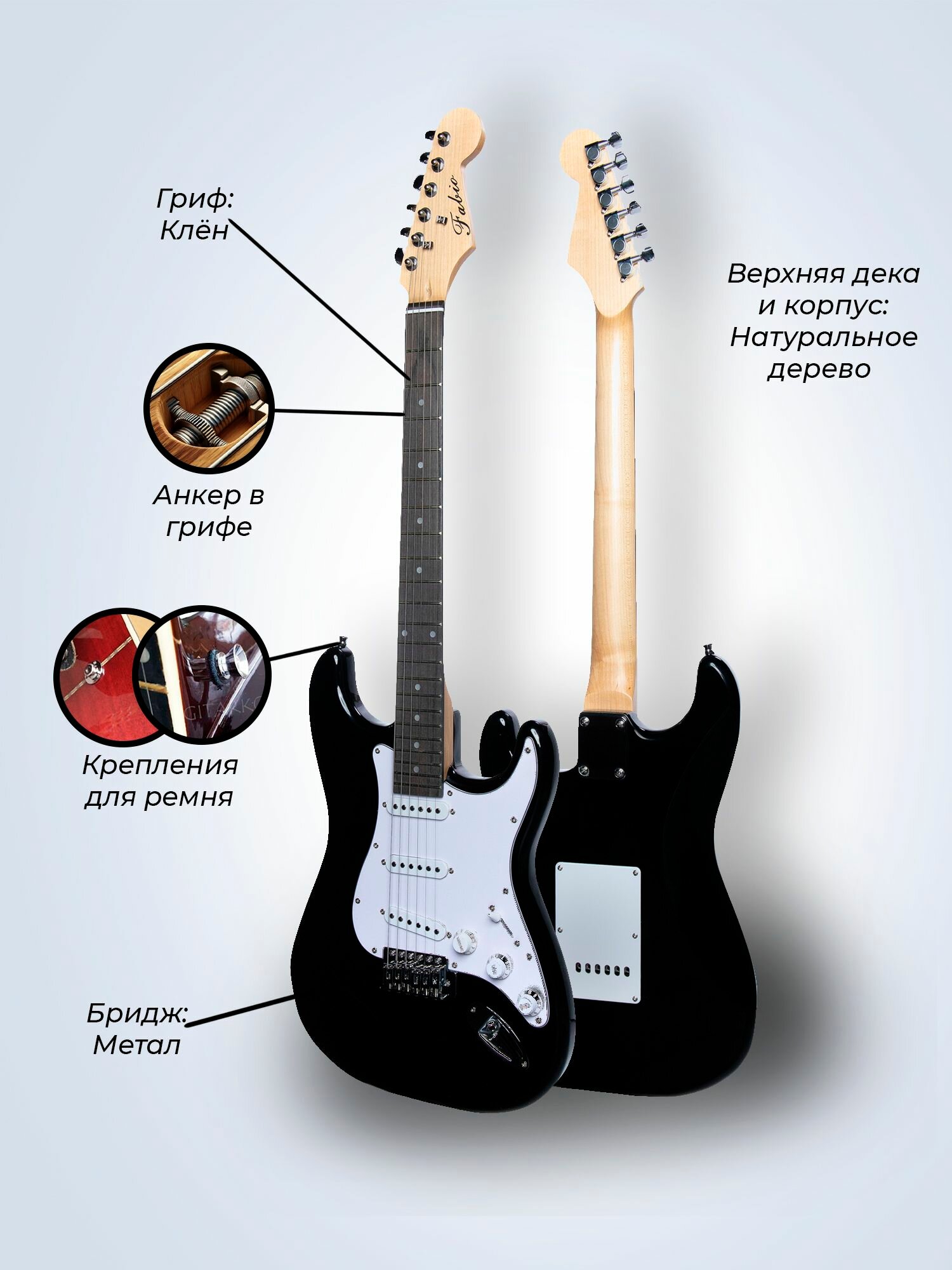 СохранитьЭлектрогитара Stratocaster Чёрная ST100 BK S-S-S, 1V+2T (Электрогитара для начинающих) интересное: