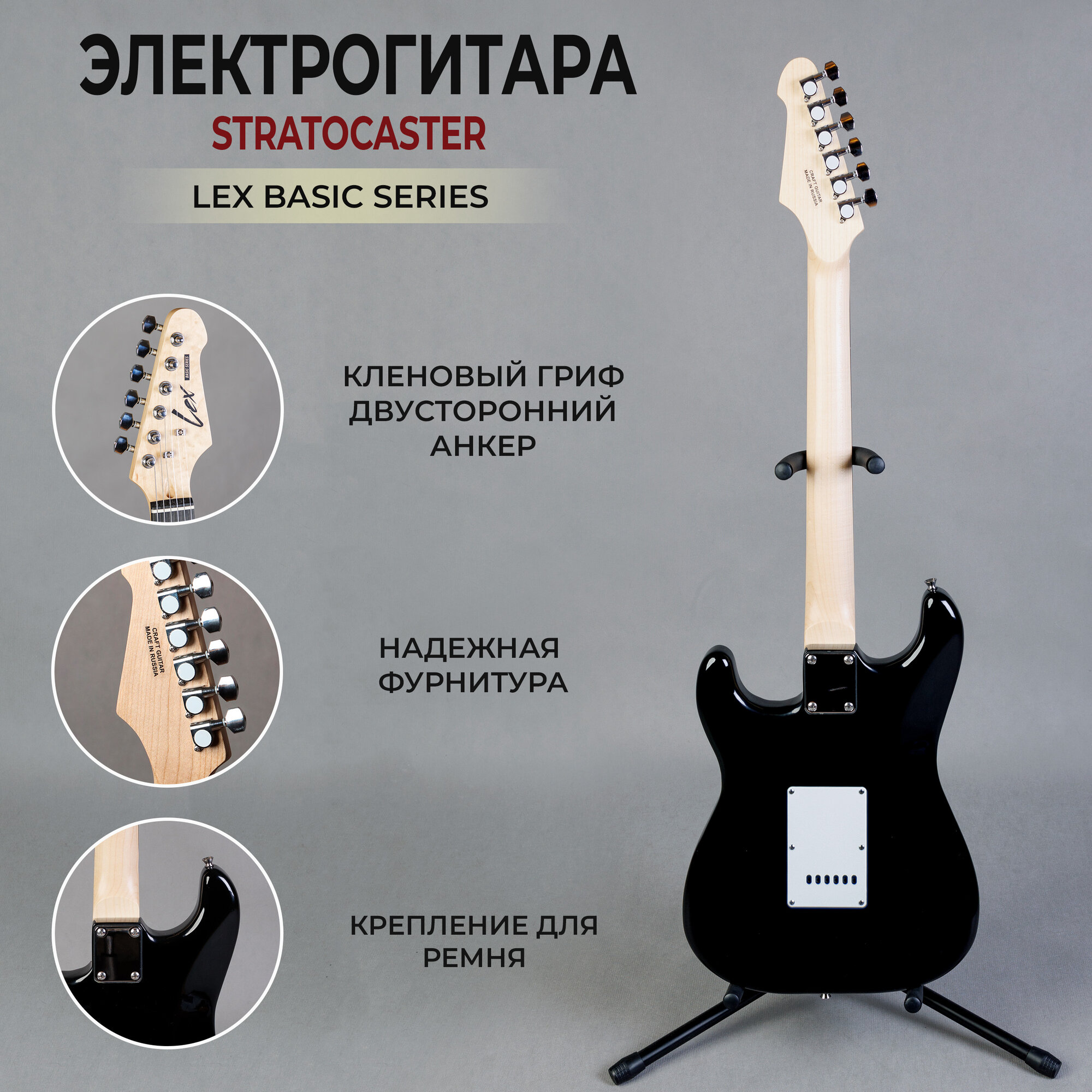 Комплект 8 в 1 Электрогитара с комбоусилителем, Lexguitar Stratocaster BlackWhite
