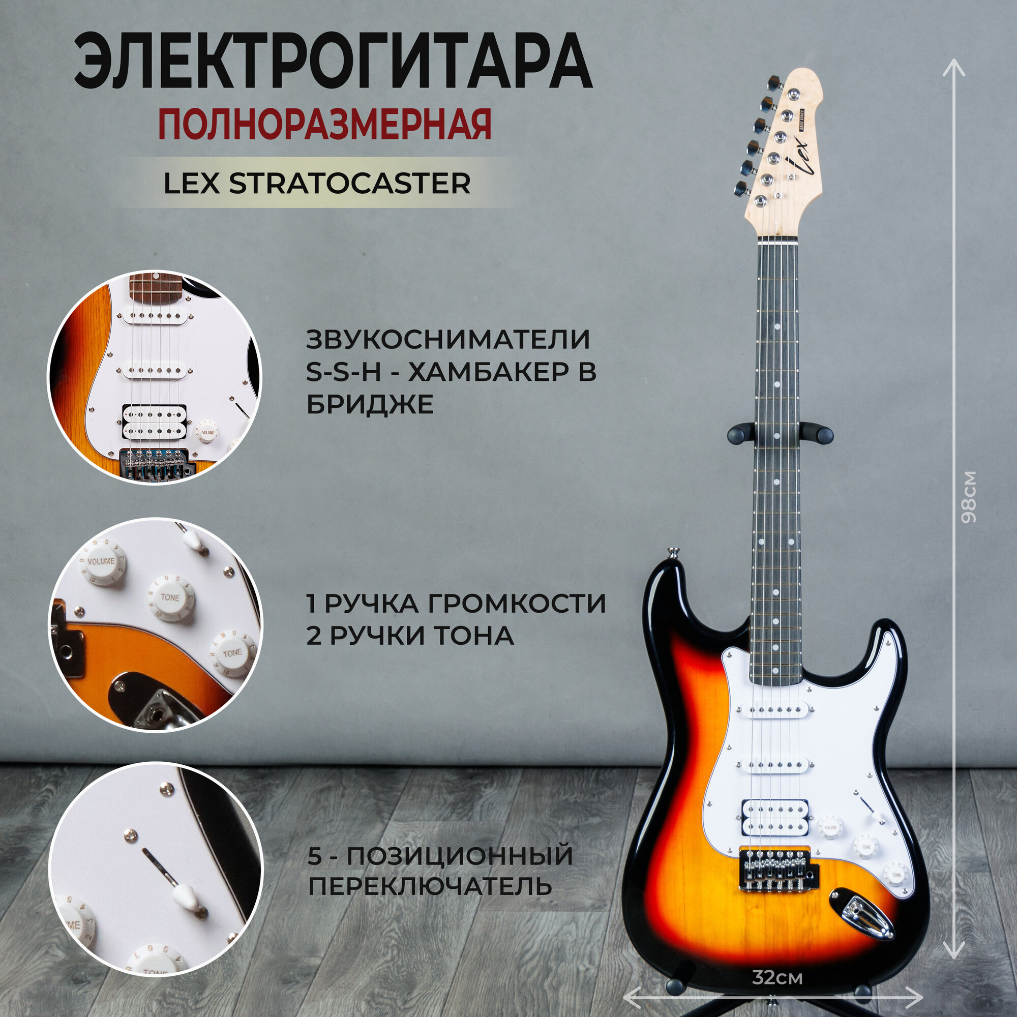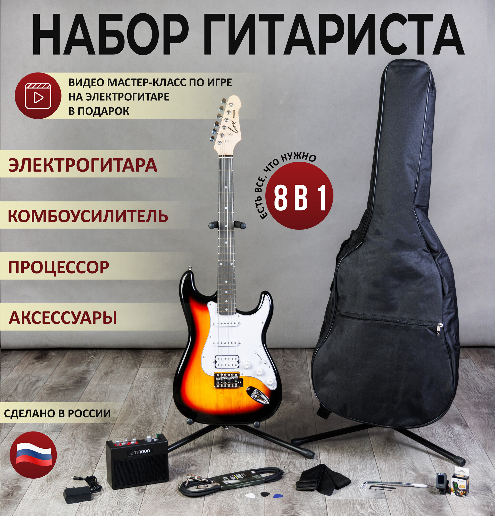 Комплект 8 в 1 Электрогитара с комбоусилителем, Lexguitar Stratocaster Sunberst Super интересное: