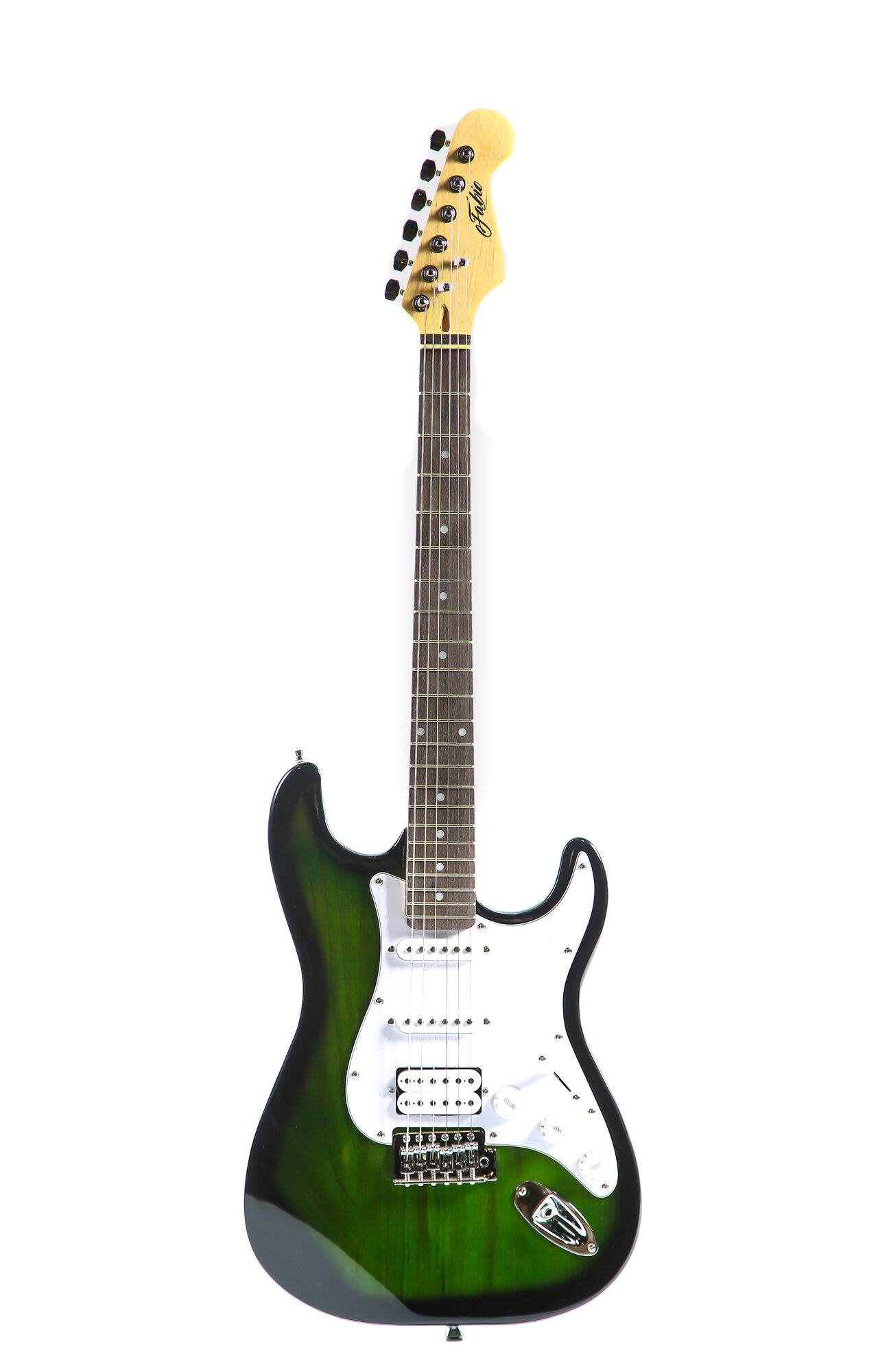 Электрогитара Stratocaster Зелёная Fabio ST200 GRS H+S+S, 1V+2T (Электрогитара для начинающих) интересное: