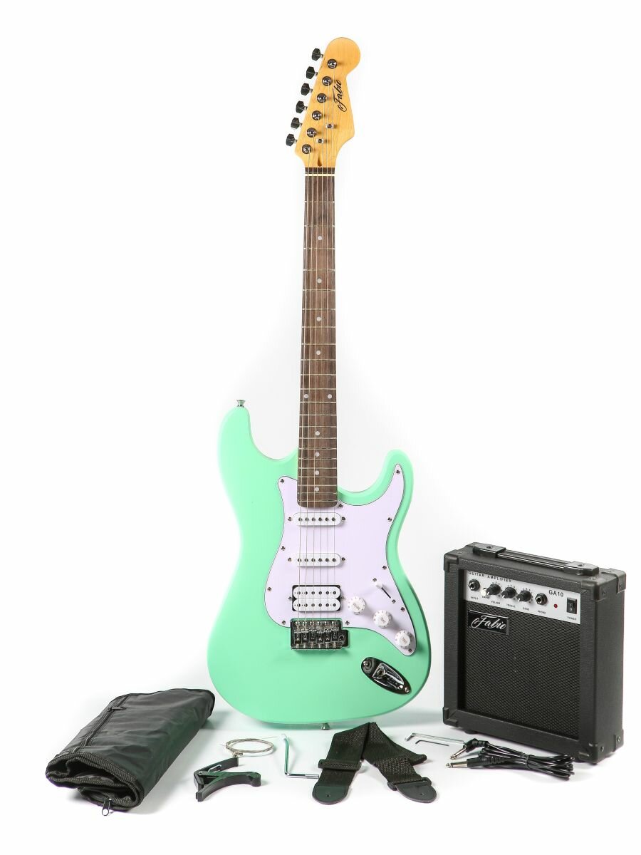 Купить Электрогитара Stratocaster Ментоловая Fabio ST200, Matt Mentol H+S+S, 1V+2T (Набор электрогитара с комбоусилителем)