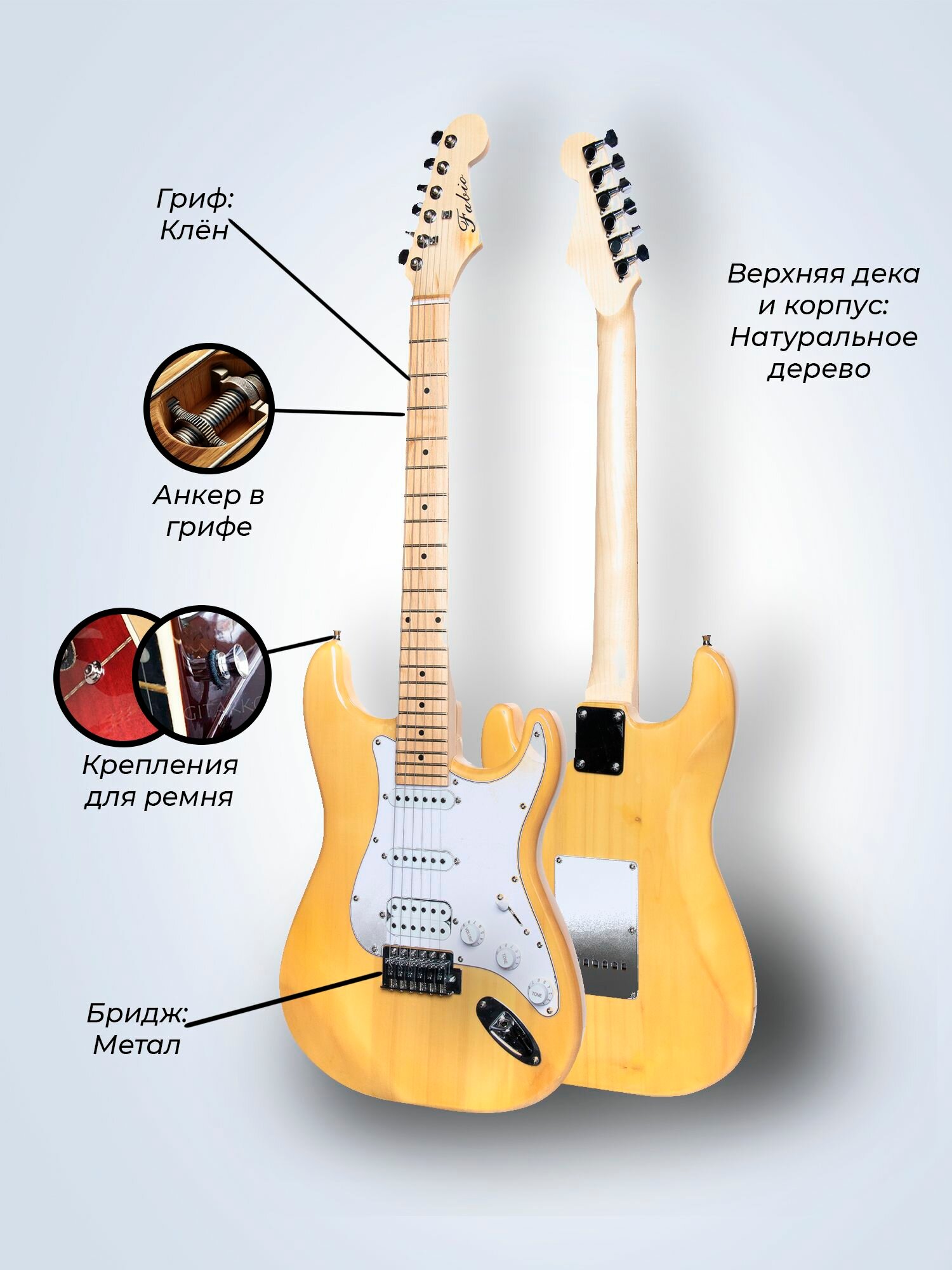Электрогитара Stratocaster Натуральная Fabio ST200 Natural H+S+S, 1V+2T (Набор электрогитара с комбоусилителем)