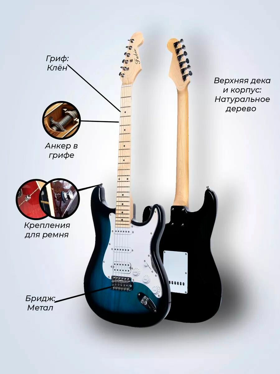 Электрогитара Stratocaster Синяя Fabio ST200, BLS H+S+S, 1V+2T (Электрогитара для начинающих) интересное: