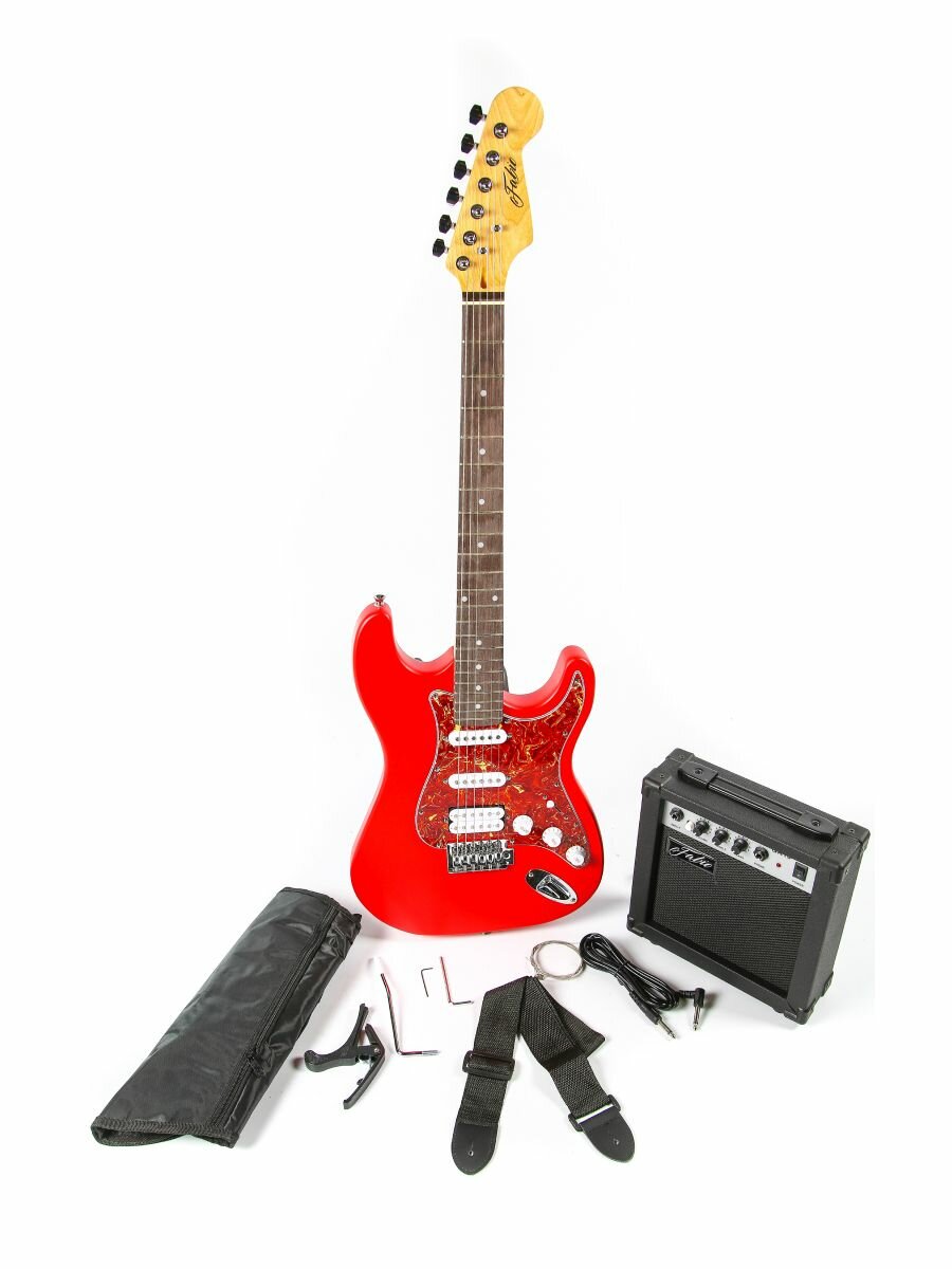 Электрогитара Stratocaster Красная Fabio ST200 RD METALL H+S+S, 1V+2T (Набор электрогитара с комбоусилителем)