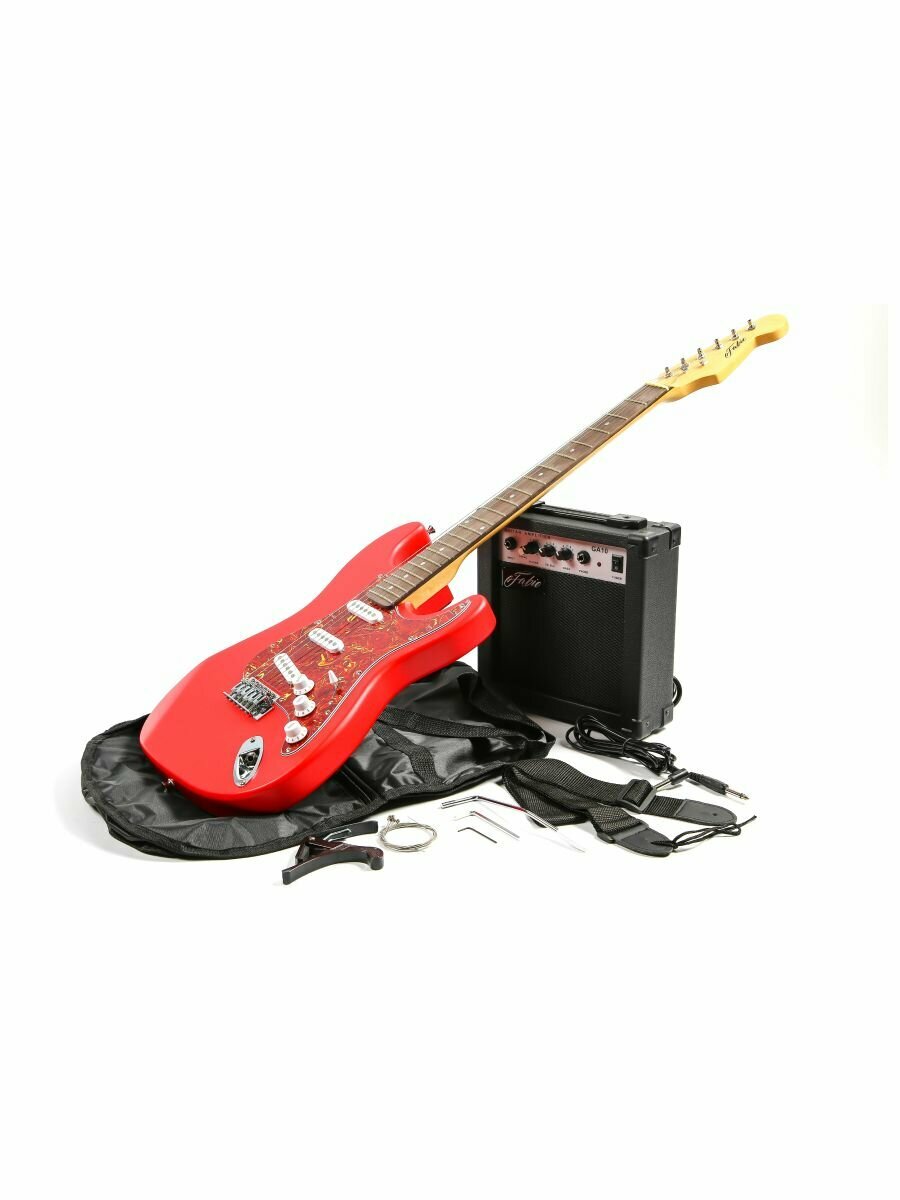 Электрогитара Stratocaster Красная Fabio ST100 RDS S-S-S, 1V+2T (Набор электрогитары с комбоусилитем)